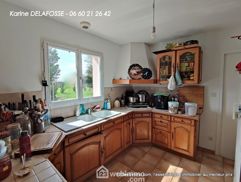 Elle se compose d'une entrée avec placard sur séjour double avec poêle à bois, une cuisine ouverte aménagée, 3 chambres avec placards, une salle d'eau, un garage avec espace buanderie. Exposition plein sud, ouvertures pvc dble vitrage, assainissement collectif au tout à l'égout, grand jardin avec terrasse.