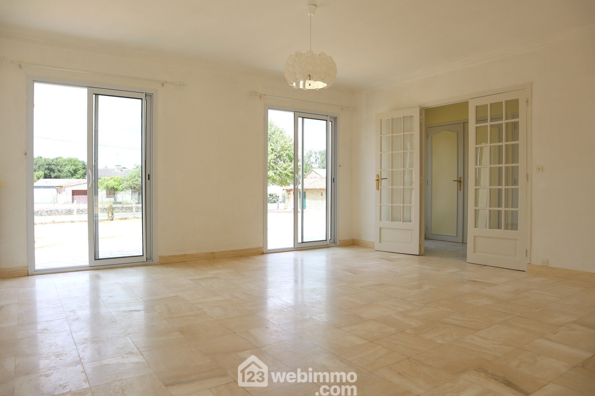 Maison plain-pied surélevée, 94 m2 habitables, 4 pièces, 3 chambres. Terrain de 4040 m2 avec plusieurs dépendances.