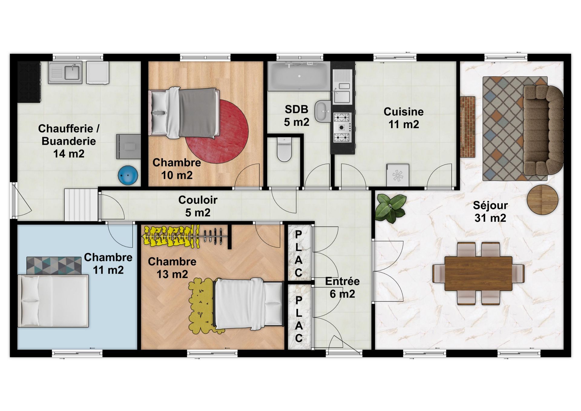Exposition Sud avec terrasses sur l'avant, l'arrière et 1 côté permettant d'avoir toujours un espace ombragé. Une maison propre et saine à saisir !
