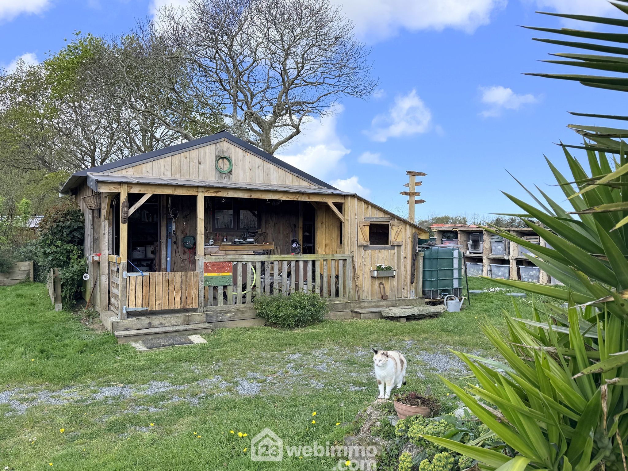 À l'extérieur la maison dispose d'un grand jardin paysager plat de 1 284m2 qui s'étend au sud et à l'ouest, renfermant des arbres fruitiers, un atelier en bois de 12m2 avec terrasse, un puits et un poulailler.