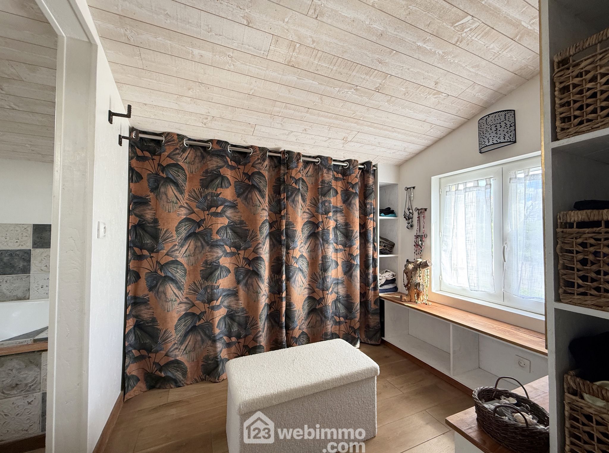 Le rez-de-chaussée se compose d'une belle pièce de vie de 50m2 baignée de lumière, incluant une cuisine ouverte, un espace salle à manger et un espace salon. Ce niveau comprend également un dressing de 5m2, une salle de bains de 6,5 m2 avec WC ainsi qu'une buanderie de 7m2 accessible par l'extérieur.