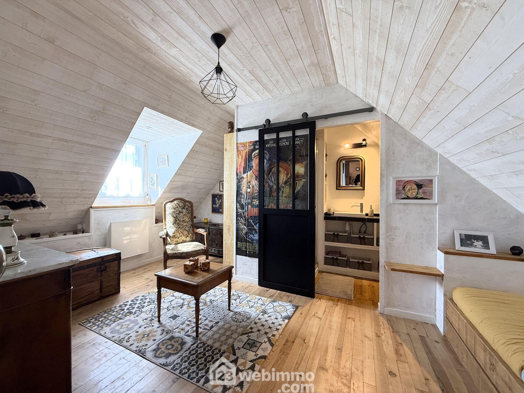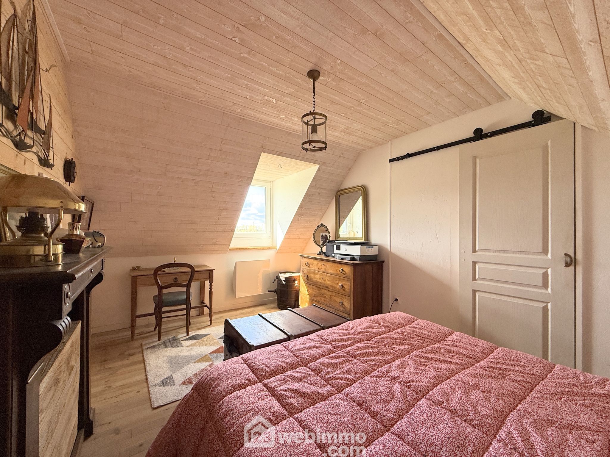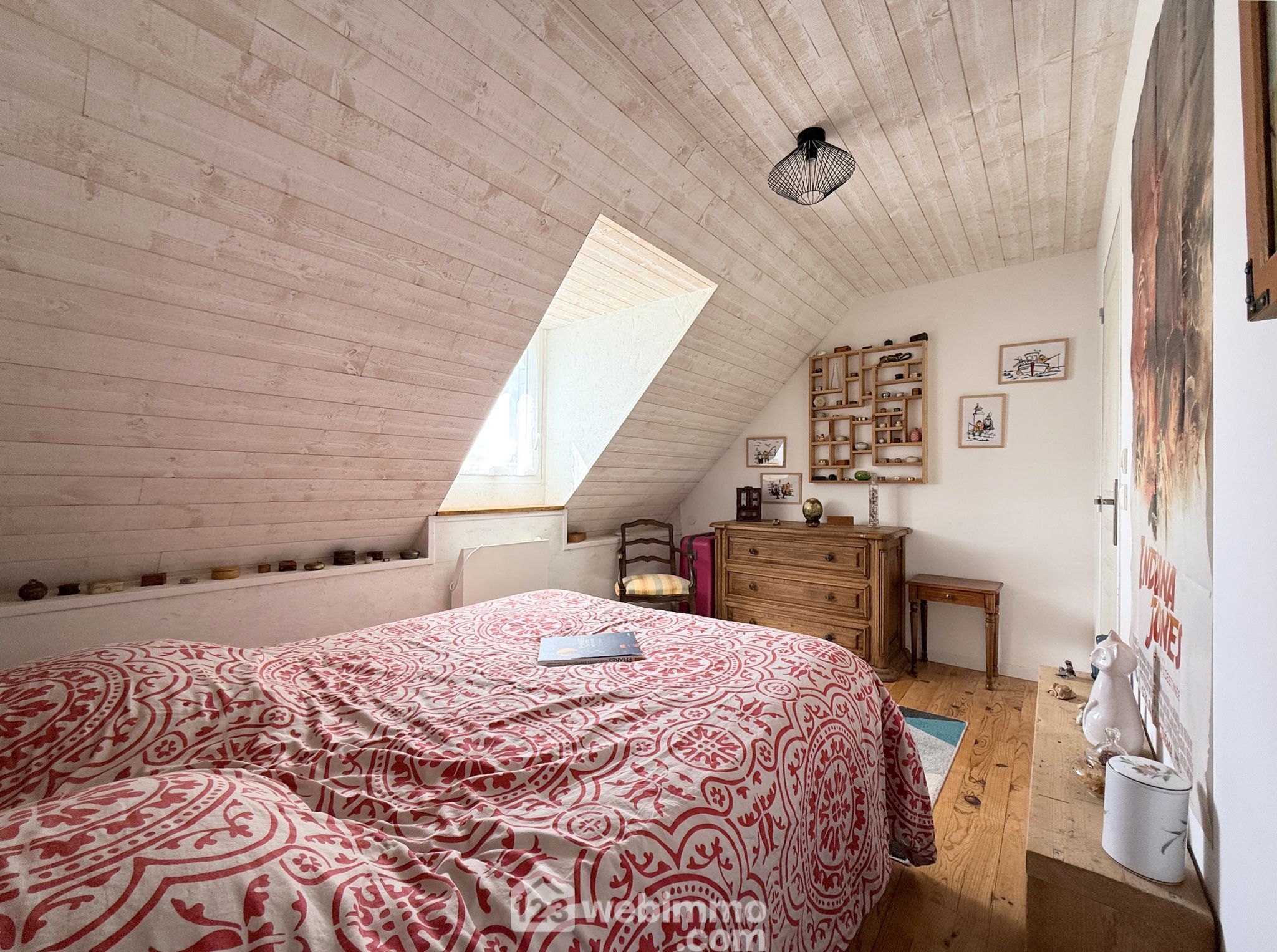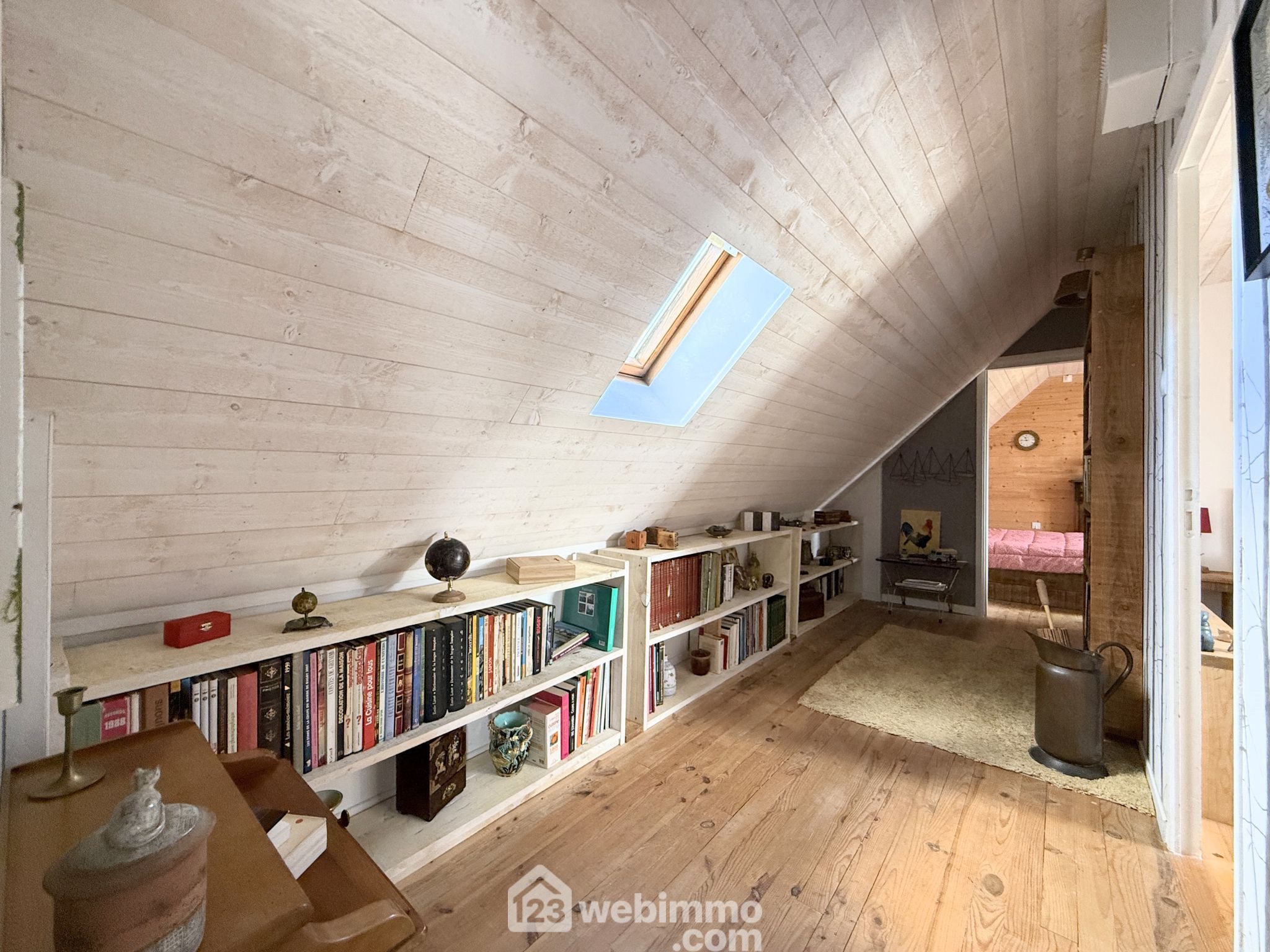 À l'étage, le palier dessert trois chambres de 11 m2 à 17 m2 au sol (9 m2 à 14 m2 habitables), dont l'une bénéficie d'une salle de douche privative avec WC.