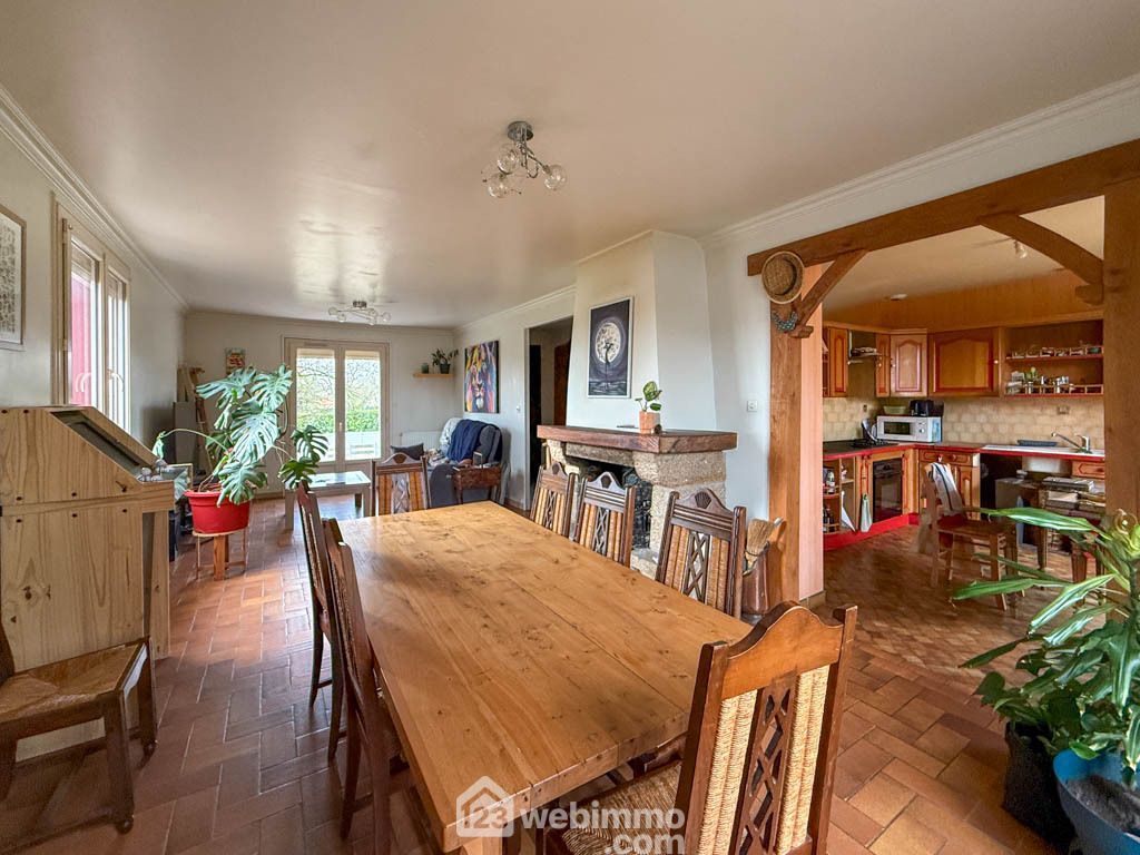 L’entrée s’ouvre sur un couloir central qui distribue les espaces. Sur la droite, le séjour-salon, lumineux grâce à sa double exposition, est agrémenté d’une cheminée à foyer ouvert 🔥. En face, la cuisine, ouverte sur le séjour-salon, permet un accès direct à la terrasse et au jardin. Sur la gauche, la partie nuit accueille trois chambres, une salle d’eau et des WC séparés.