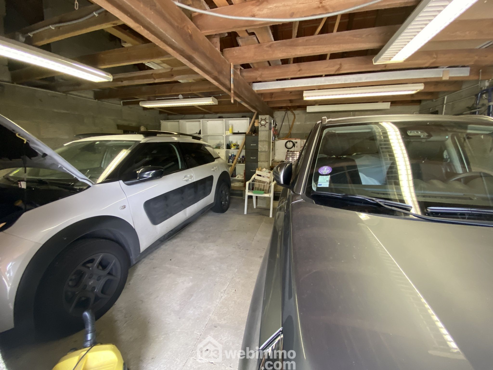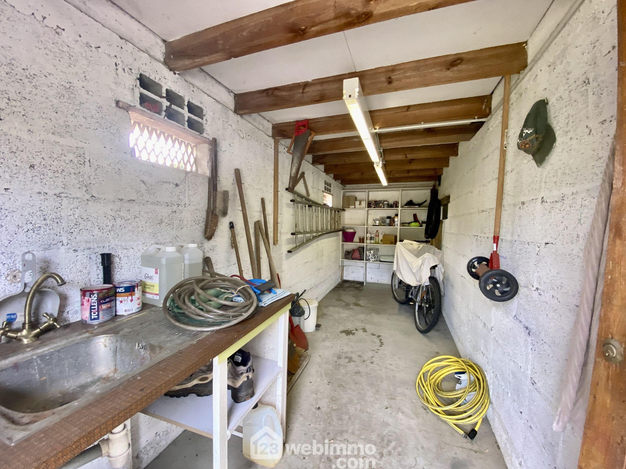 Au fond du jardin, un bâtiment comprenant un garage pour 2 voitures, 2 pièces de rangements et possibilité d'aménager le haut.