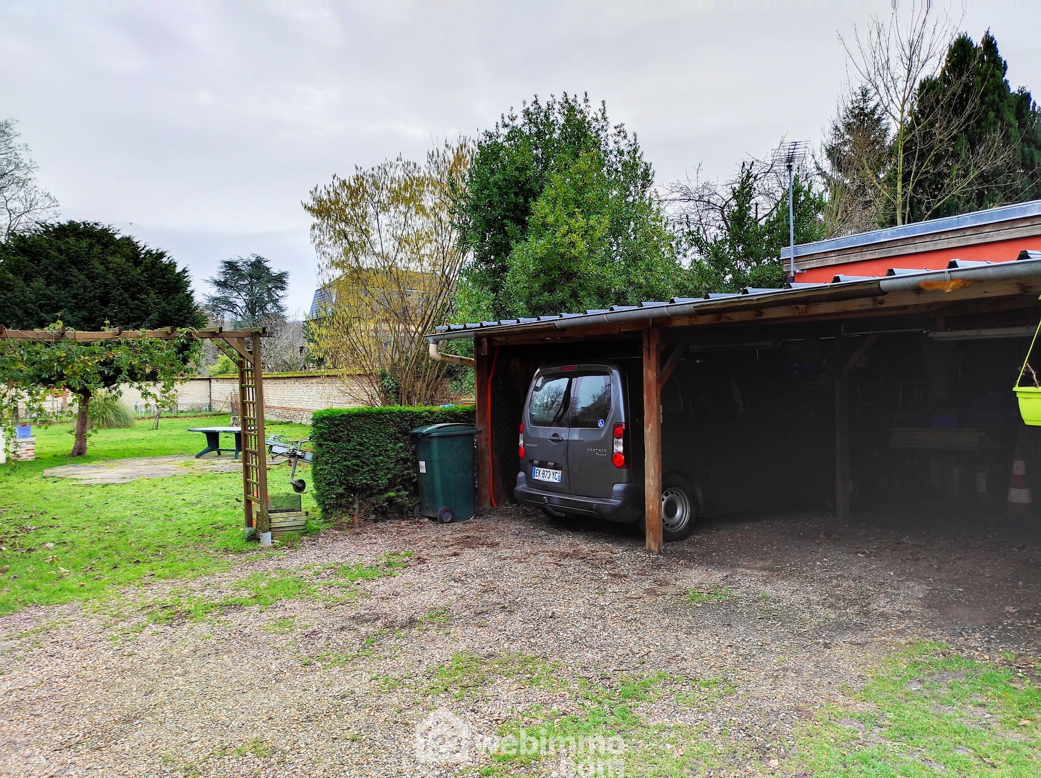 Dépendance à usage d'atelier/garage (14 m²), cave 17 m² avec grenier au-dessus 16 m². Carport deux voitures.