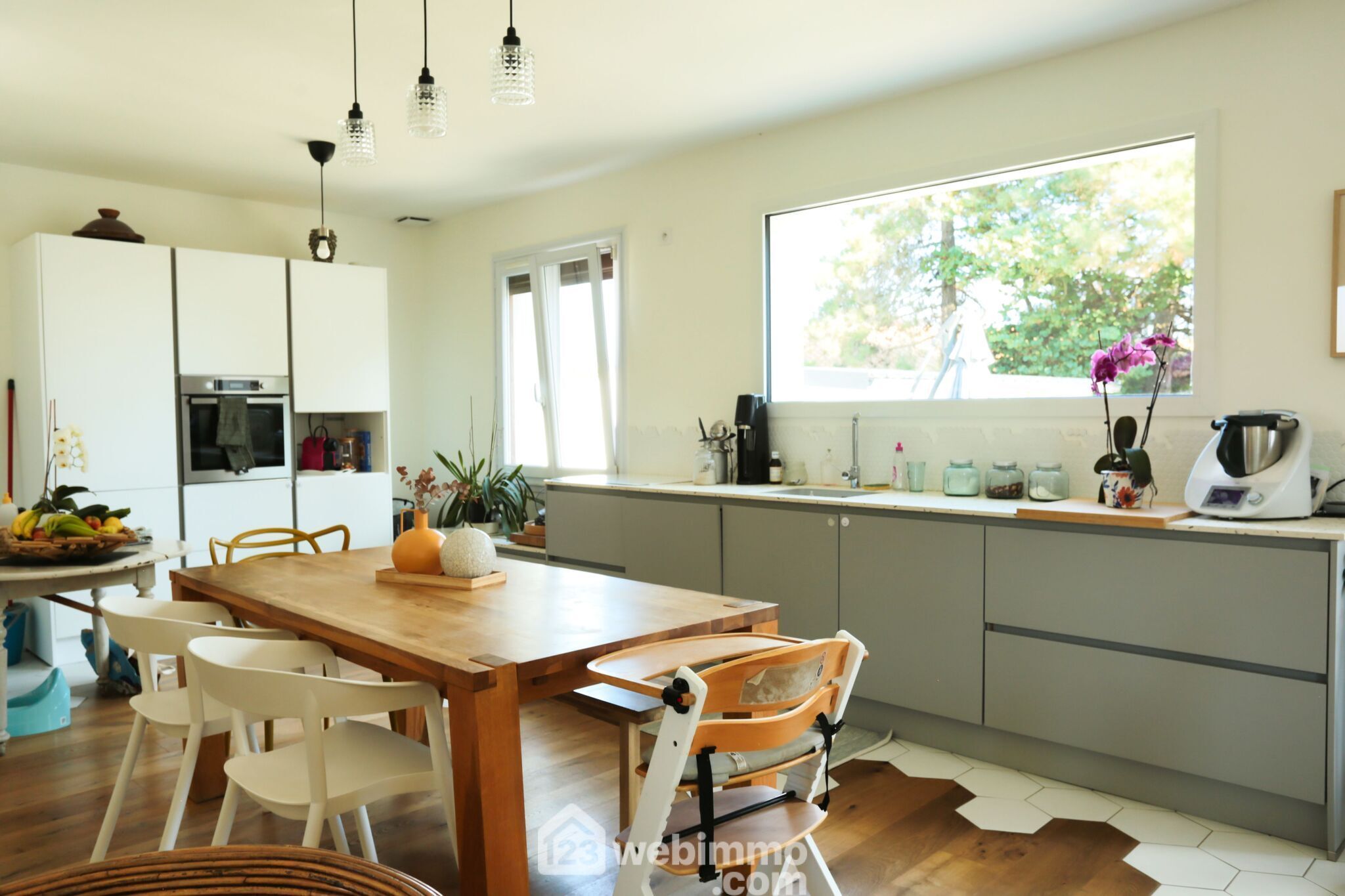 À l'extérieur, une belle terrasse en bois surplombe un jardin orienté plein sud. La piscine est le lieu parfait pour des après-midis en famille ou des moments de détente. Un garage à vélo et un espace de stationnement sont également à votre disposition.