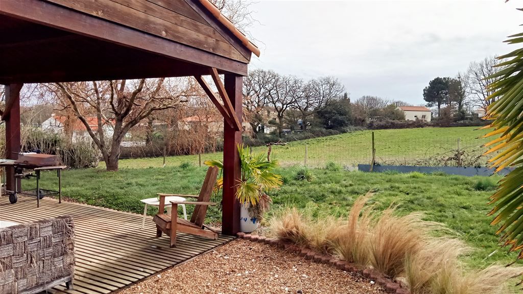 A l'extérieur, vous pourrez profiter d'une vaste terrasse couverte, orientée Sud Ouest avec une vue sans vis-à-vis, parfaite pour les apéros entre amis ou regarder les enfants jouer dans le jardin d'environ 800m².