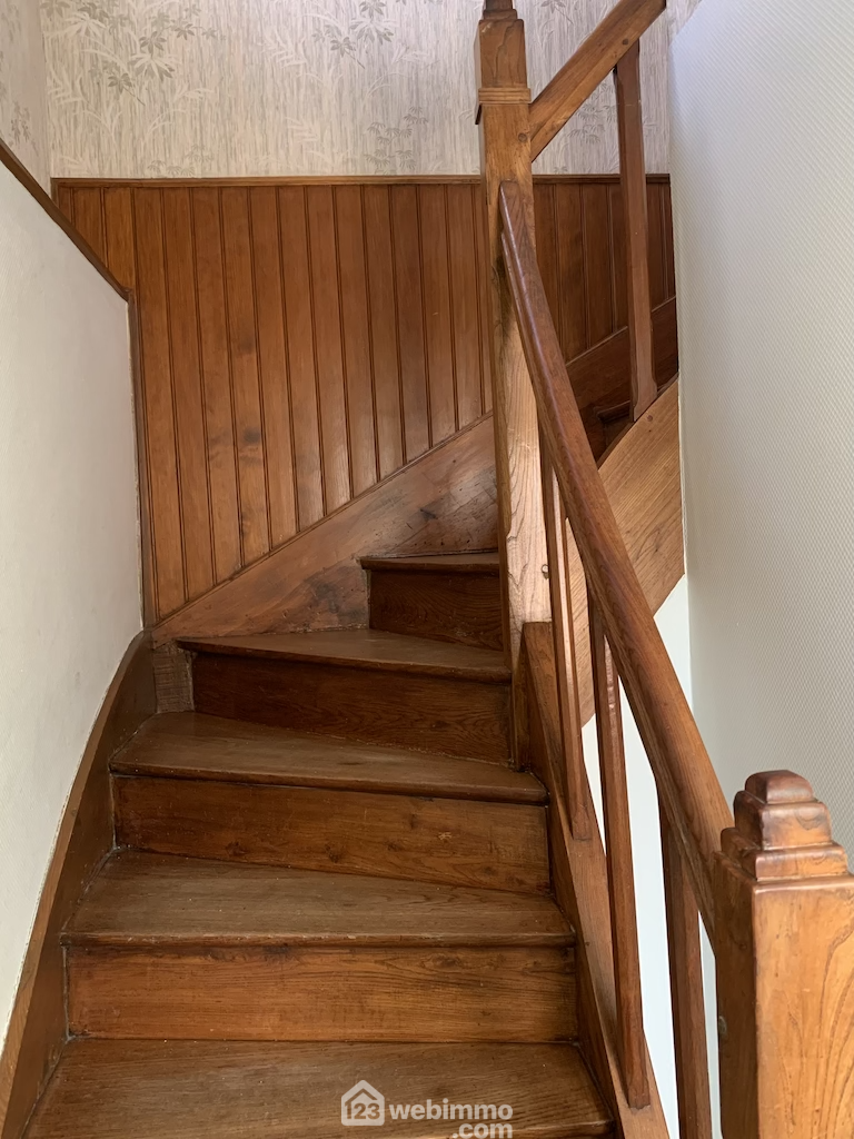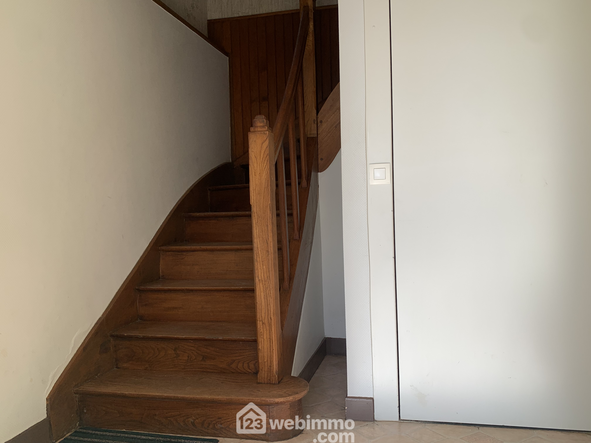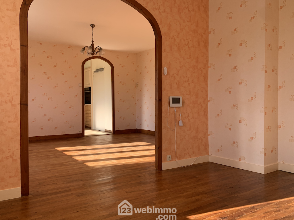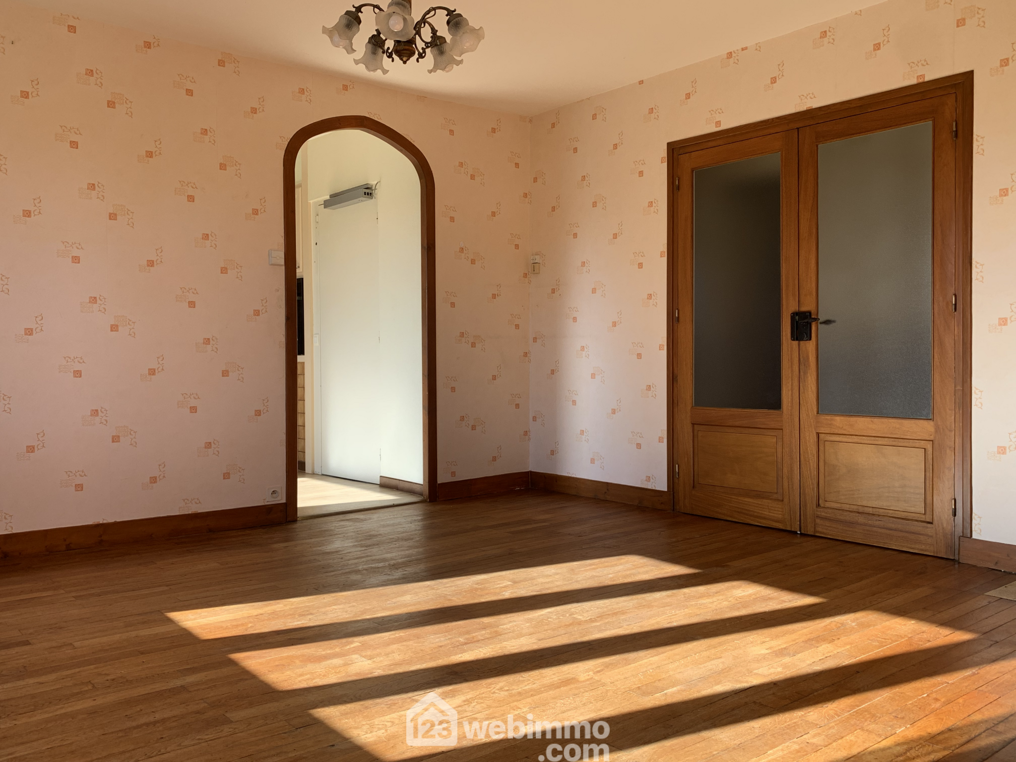 À l'étage, un couloir distribue l'ensemble des pièces : salon / séjour d'environ 30 m2, cuisine aménagée, 3 chambres, salle d'eau et WC.