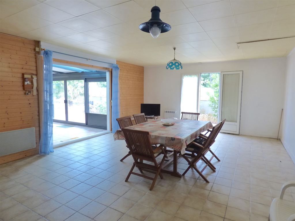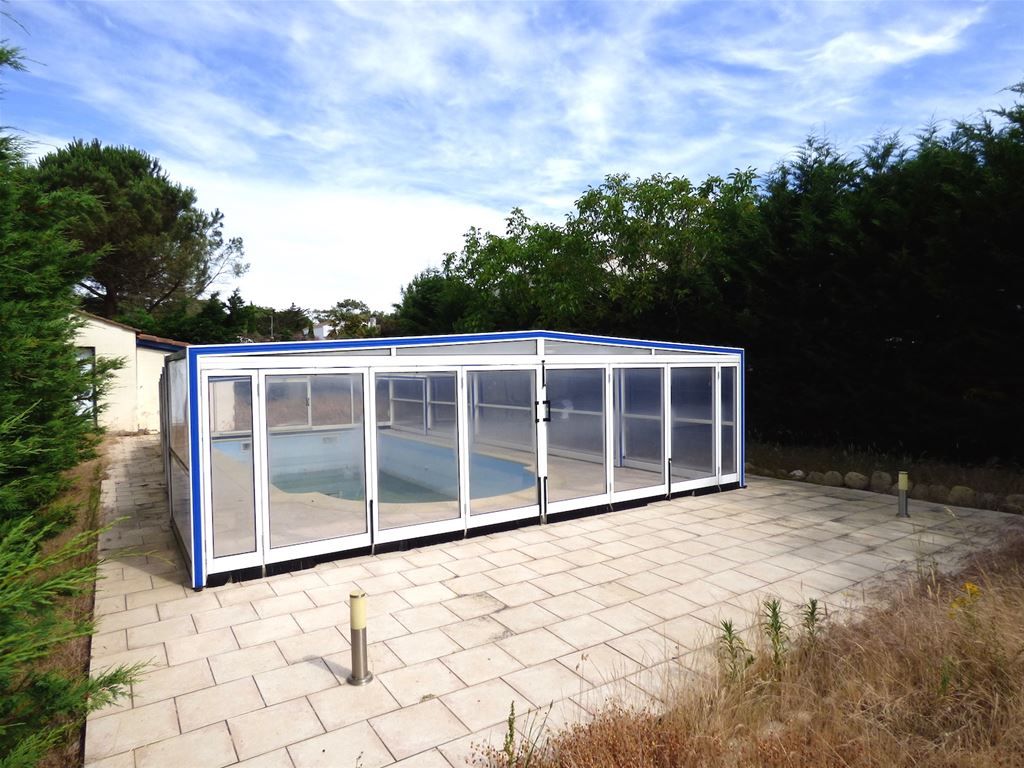 Maison composée d'une pièce de vie, 3 chambres, salle d'eau et une véranda. Une piscine couverte de 9 X 4 m. Sur un terrain clos de 670 m2. Située à 250 m de la plage et de la forêt.