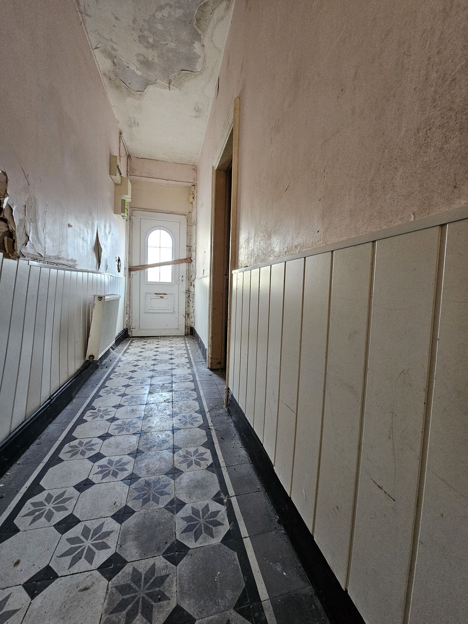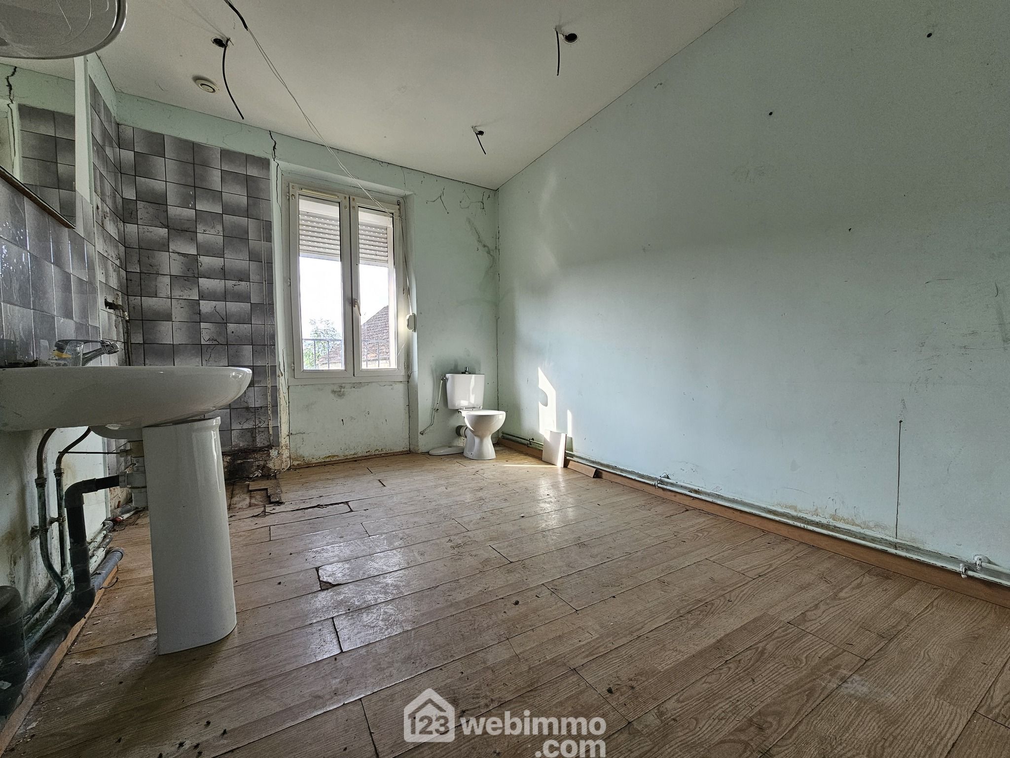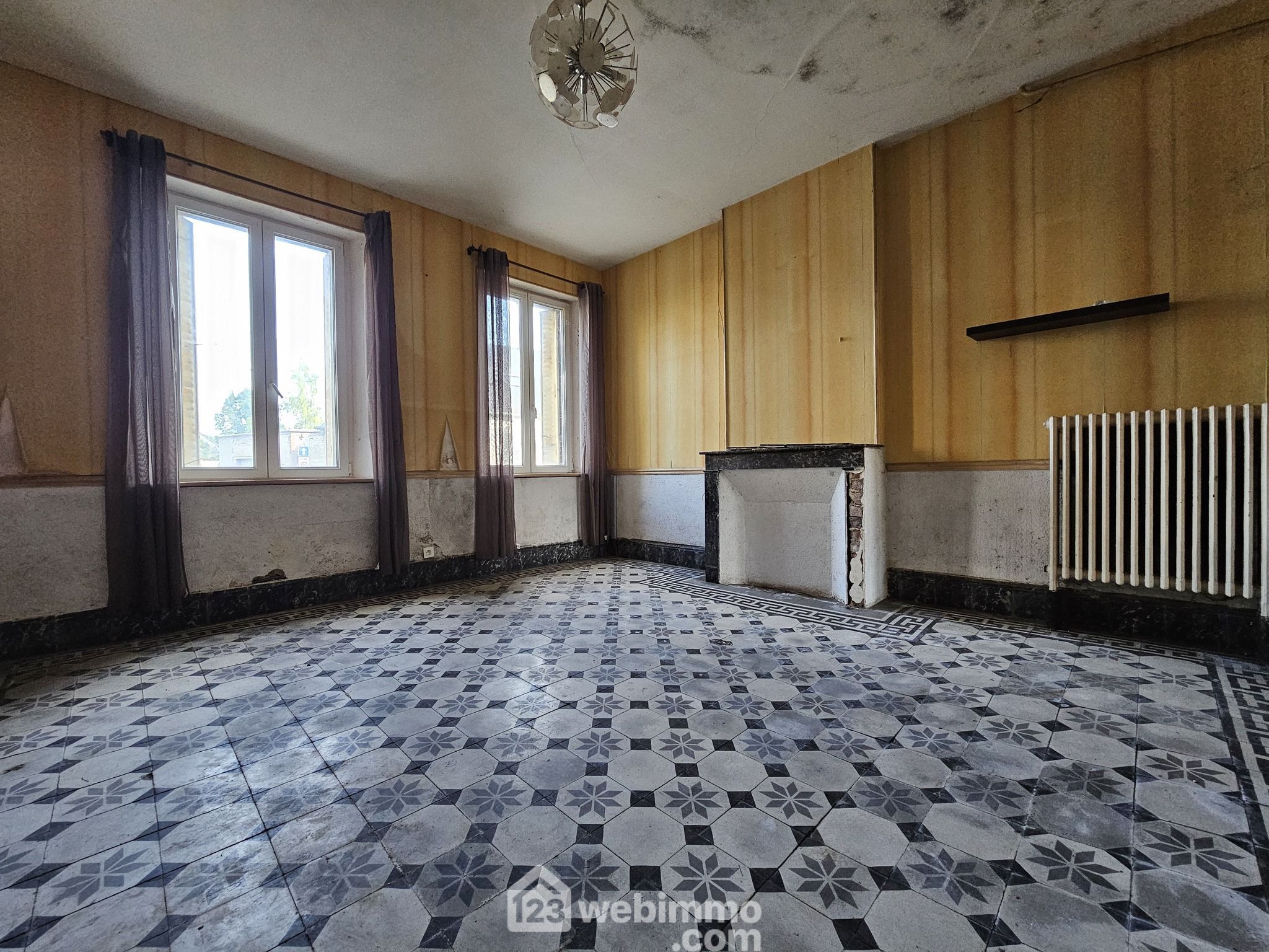 Maison à rénover d'une surface de 95m² comprenant une entrée, une pièce à vivre de 20m², un espace cuisine à aménager de 16m².