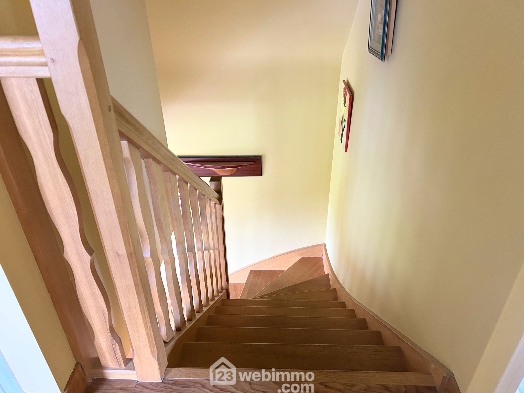 À l’extérieur, le terrain accueille un abri de jardin de 7 m² et deux places de stationnement, complétant harmonieusement l’ensemble. Un environnement agréable et une maison facile à vivre,