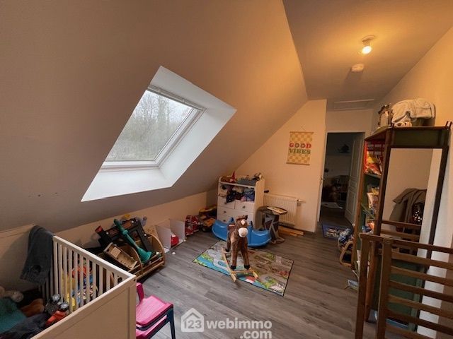 - A l'étage, par plancher bois : Palier desservant deux chambres, salle de bains, et wc indépendant.