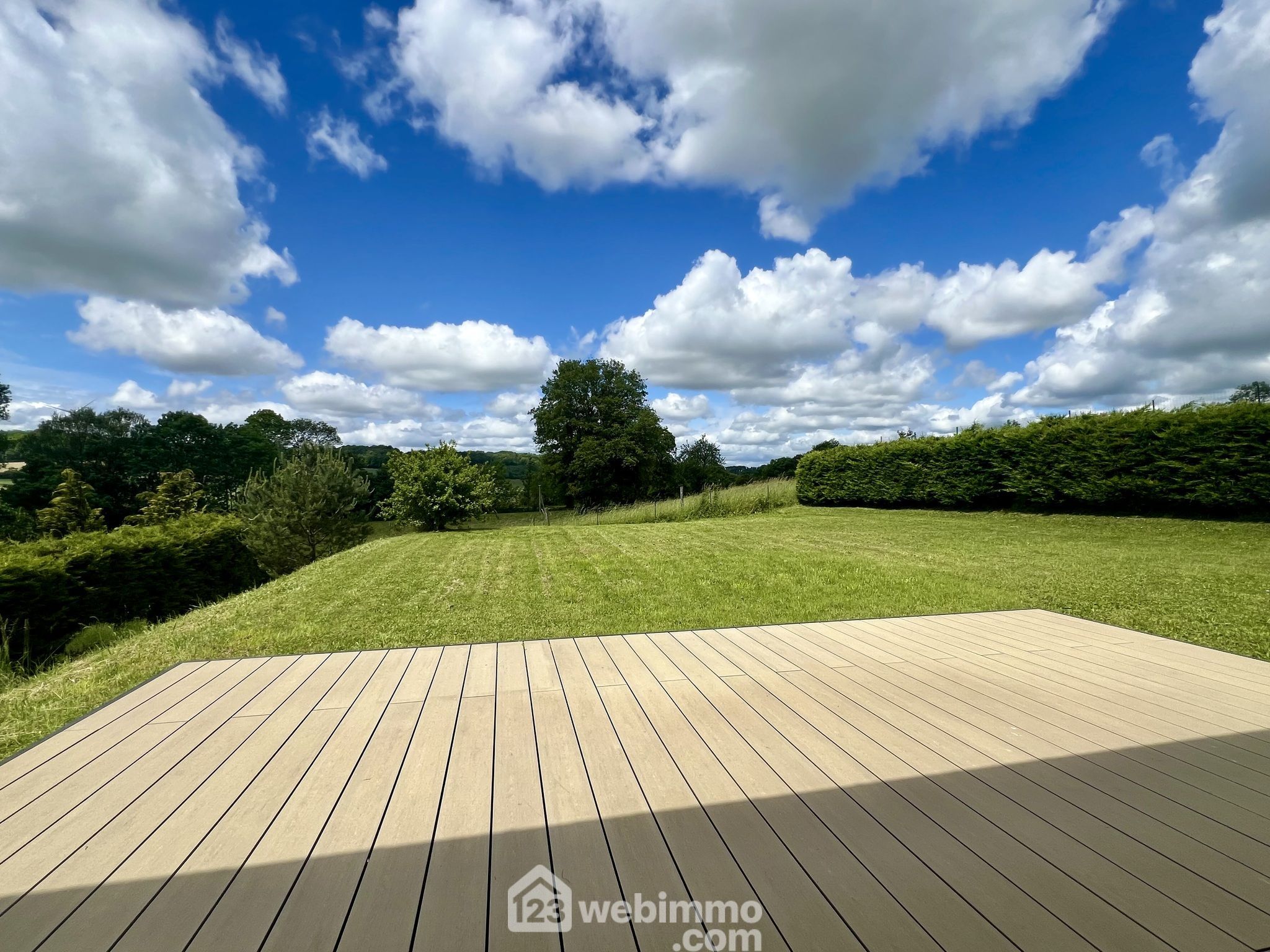 La terrasse et le terrain plat à l'arrière vous permettront de profiter des journées estivales grâce à l'absence de vis à vis, à la vue dégagée sur la nature et à l'exposition Ouest.