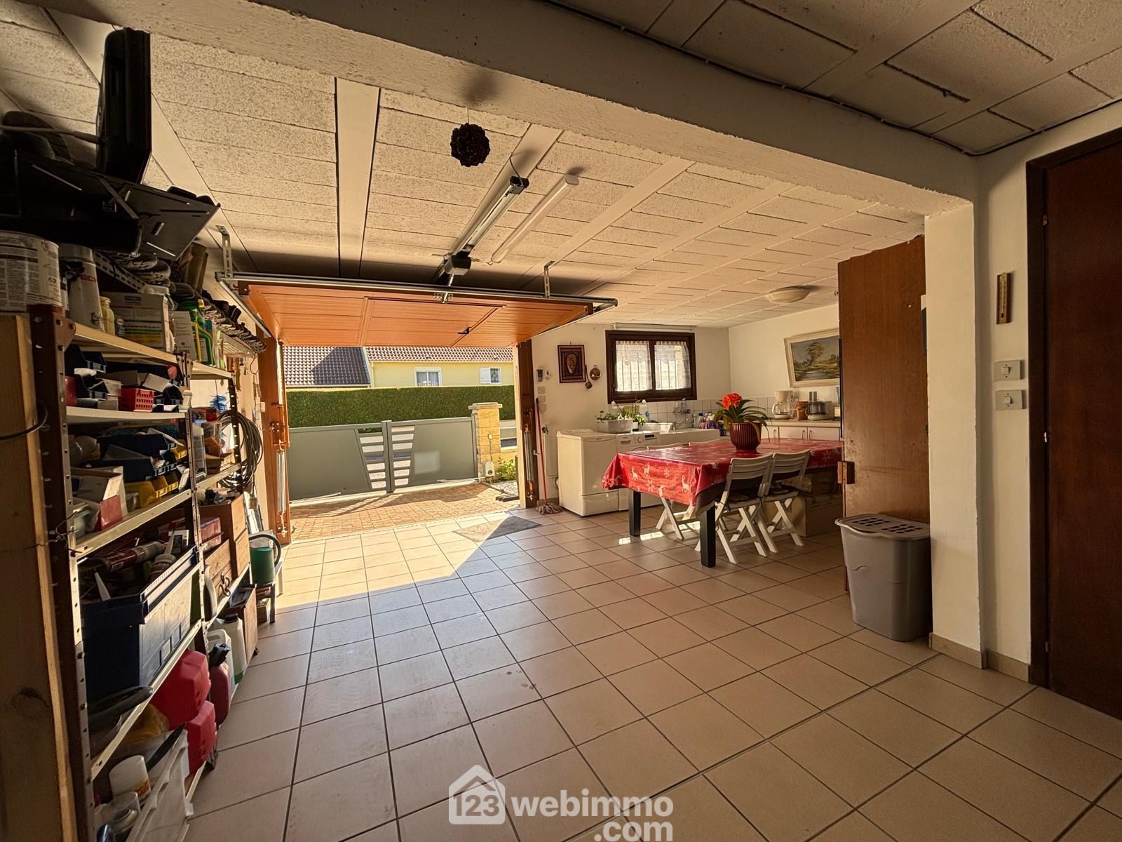 Le sous-sol carrelé de 71 m² abrite un garage spacieux, une cuisine aménagée et buanderie, offrant des possibilités d'aménagement et de rangement supplémentaires selon vos besoins.