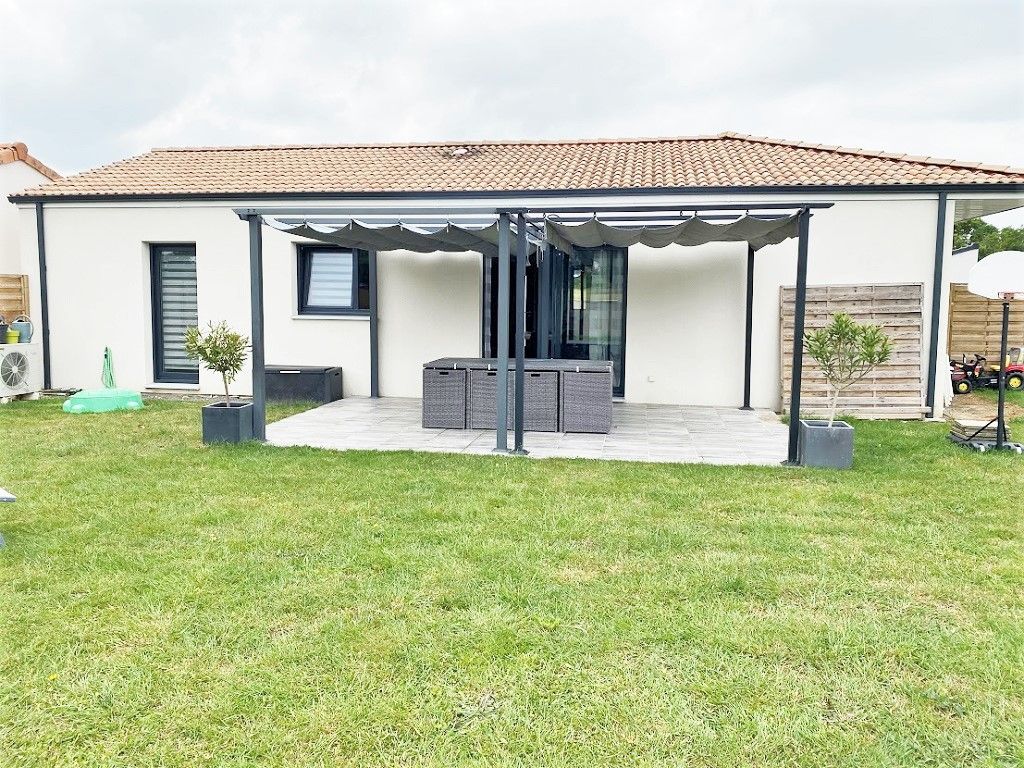 49360 Maulévrier, construction ossature bois de 2018 dont la superficie est de 98m² sur une parcelle de 584m² proche des écoles et des commerces. La maison de plain pied se compose d'un séjour/salon/cuisine de 43.64m², d'un bureau et d'une buanderie. La partie nuit distribue 3 chambres avec placards, une salle de bain (douche et baignoire) et un toilette séparé. Un garage de 16m² termine la maison. A l'extérieur, une terrasse carrelée de 24m² et pergola alu agrémentent la parcelle entièrement close. Les ouvertures sont en PVC double vitrage avec volets roulants électrique. L'ensemble de la maison est sous garantie décennale. L'assainissement est collectif et la taxe foncière est de 695€ pour 2021.