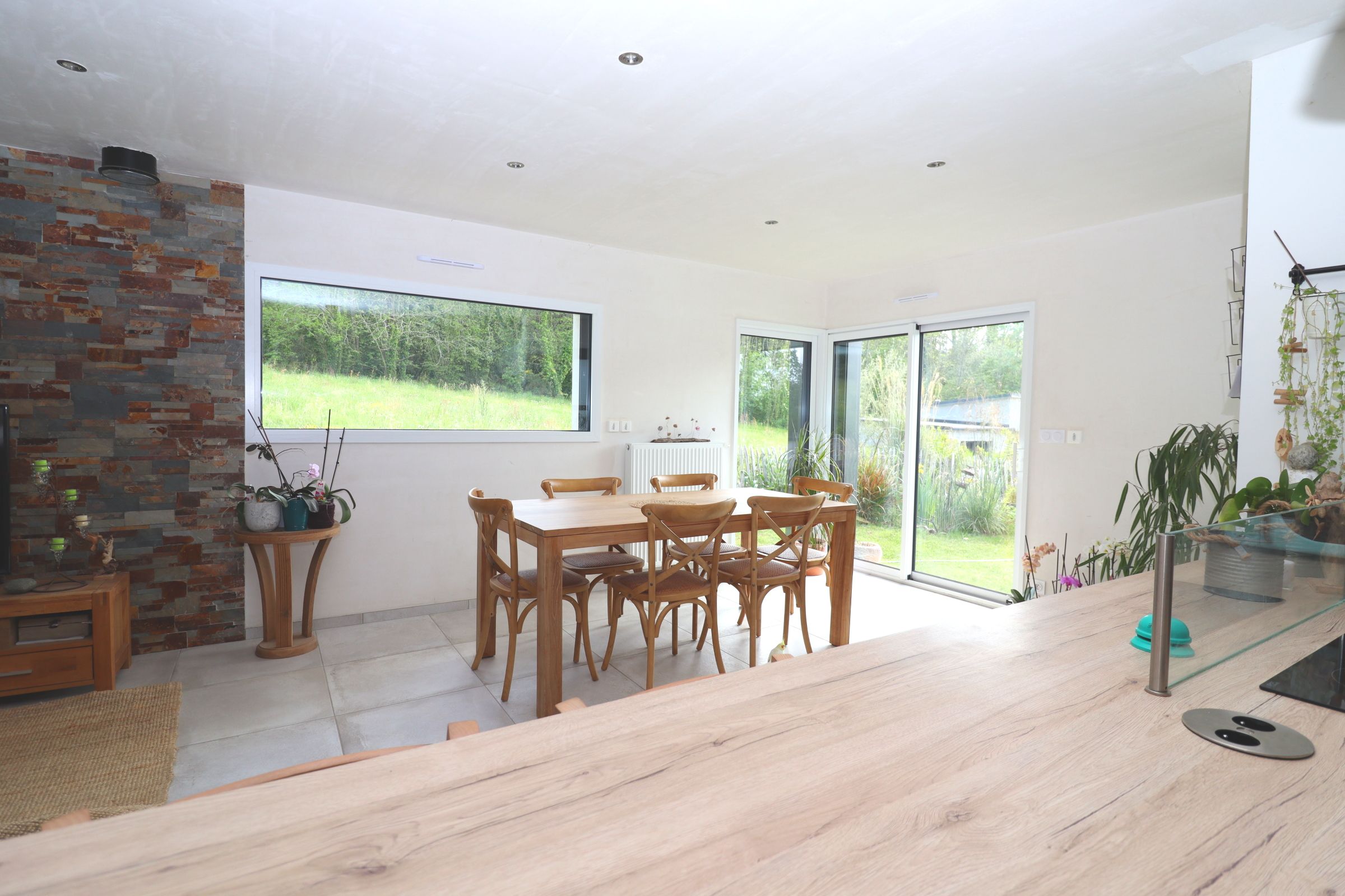 La maison offre de belles prestations : Tout à l'égout, pompe à chaleur air/eau, menuiseries alu double vitrage avec volets roulants électriques au rez-de-chaussée et conduit pour poêle à bois.
