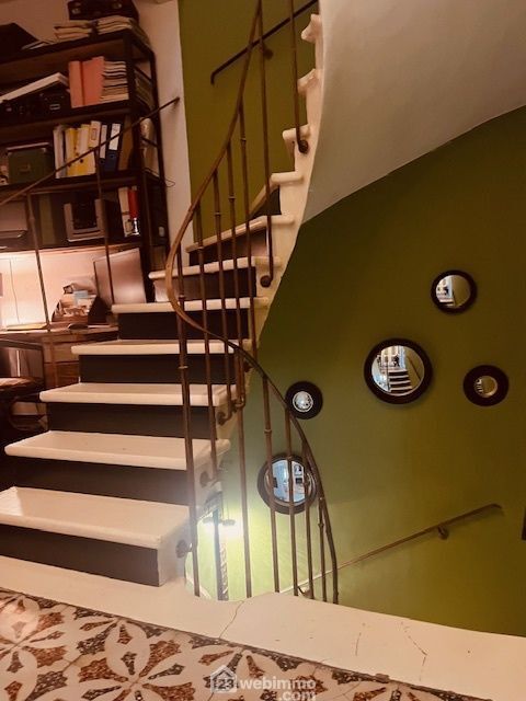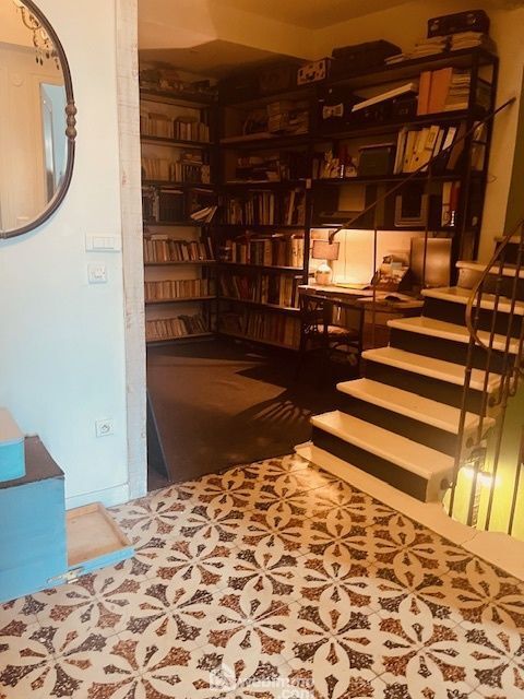 Au premier étage : 2 chambres avec balcons et dressing menant à une salle de bains avec wc, une bibliothèque complète cet étage.
