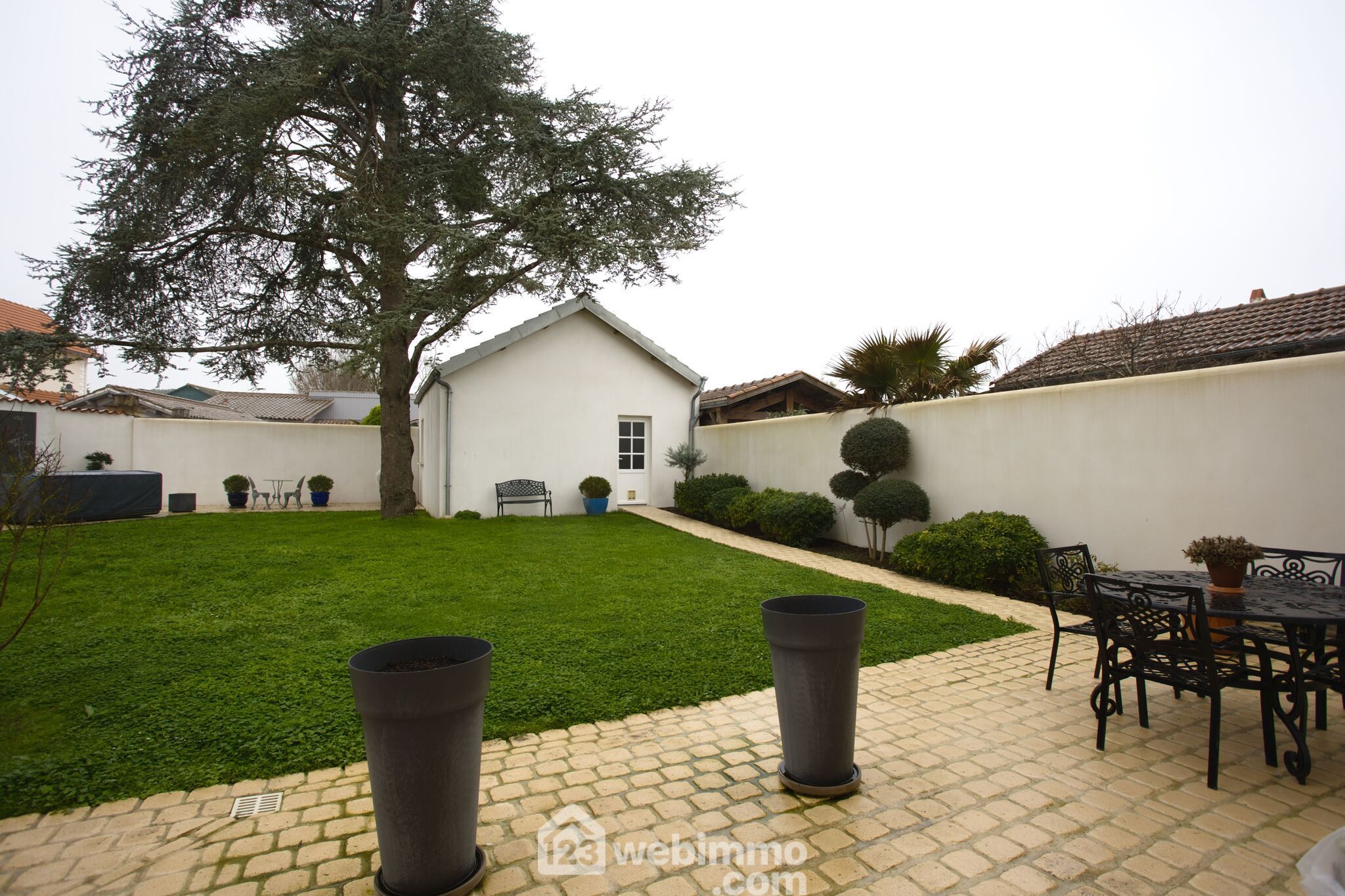 Un grand garage de 36 m² constitue un atout rare en centre-bourg. À l’extérieur, le jardin clos, soigneusement aménagé, propose un agréable espace terrasse pavé, à l’abri des regards.