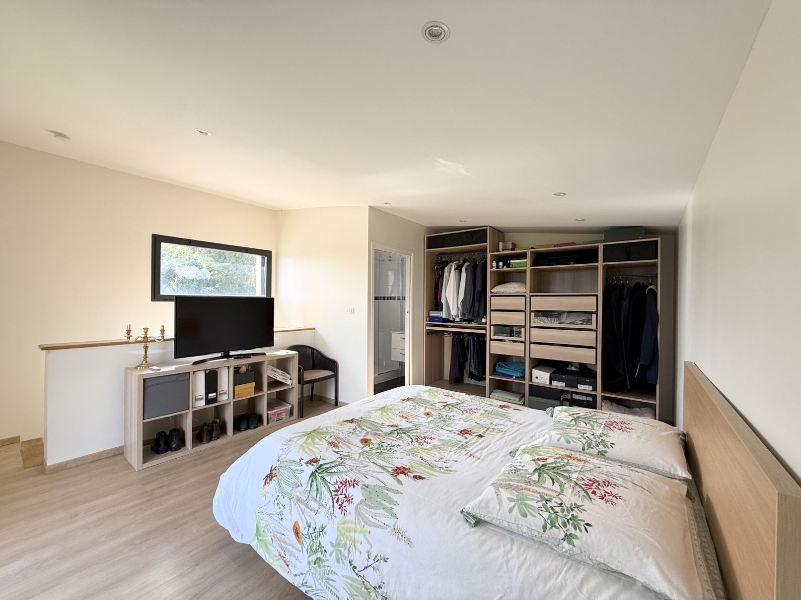 Le rez-de-chaussée accueille trois chambres confortables, une salle de bains, un cellier et se prolonge par un garage de 33m2 avec porte automatique. À l’étage, une suite parentale de 24 m², avec salle de douches et WC privatif, offre une indépendance bienvenue, un peu à l’écart du reste de la maison.