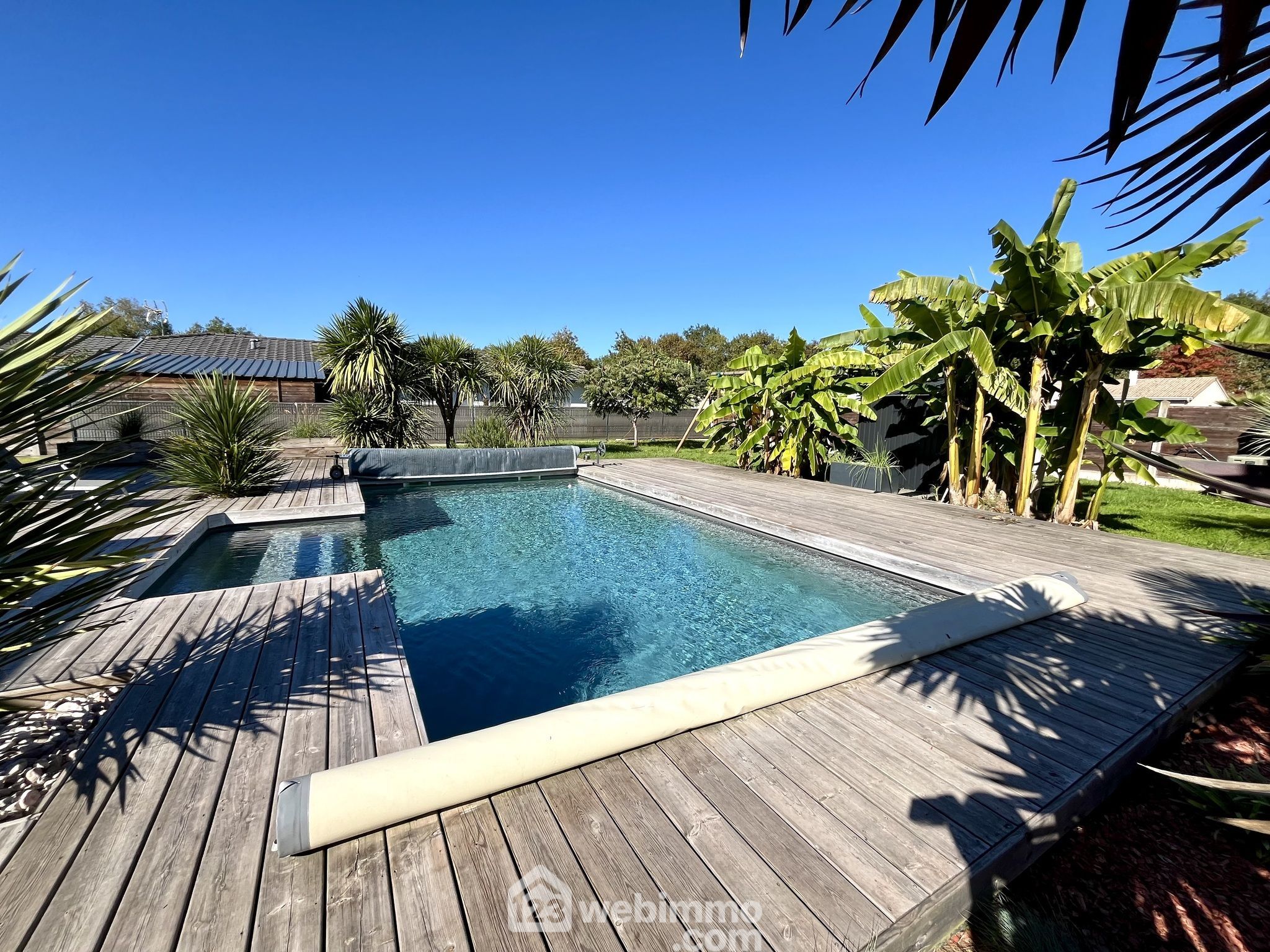 À l’extérieur, place à la détente : un jardin paysagé, une grande terrasse conviviale et une piscine chauffée 8x4 composent un cadre idéal pour profiter des beaux jours.