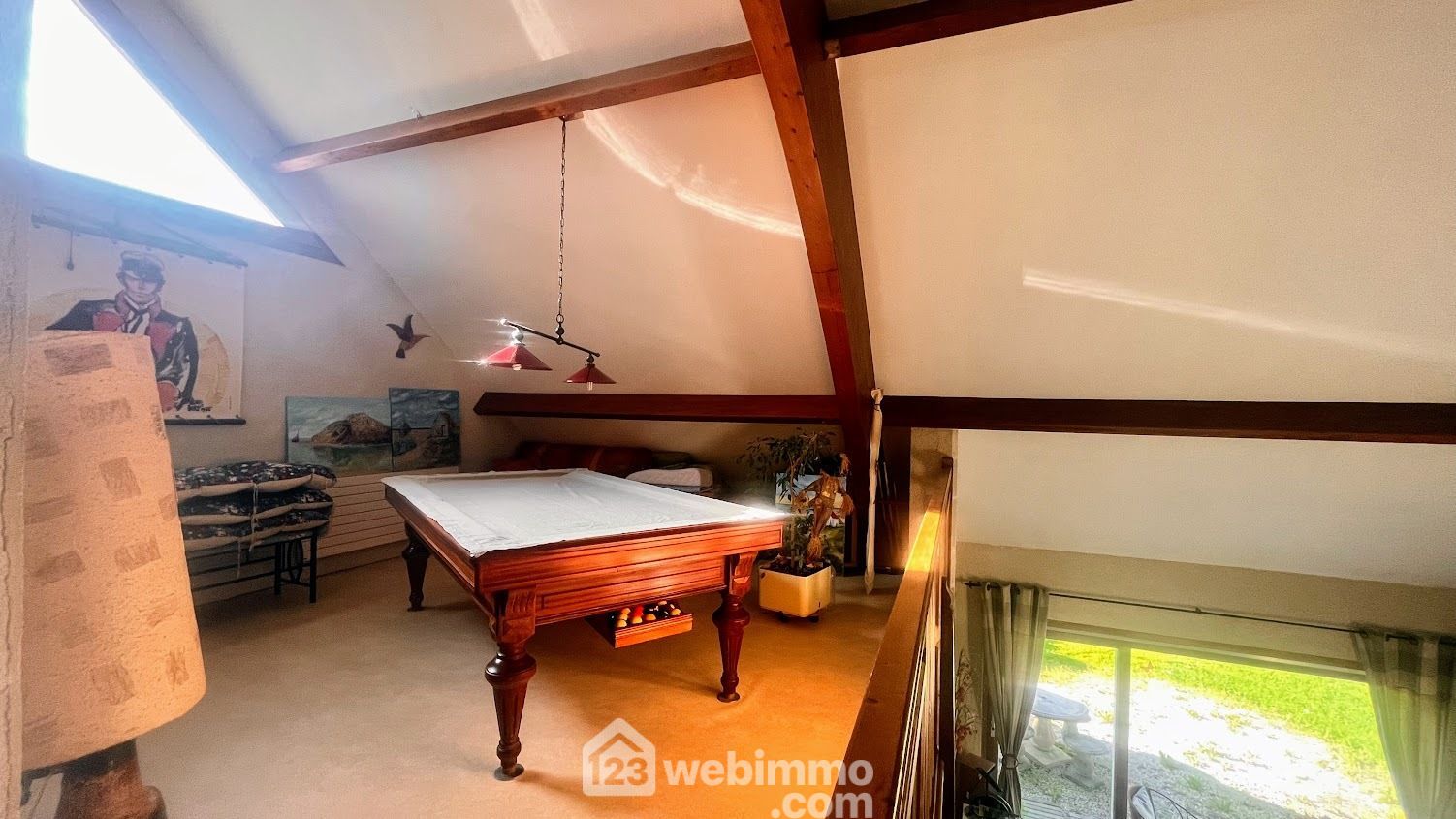 Au 1er étage : grand palier (34 m2), petite chambre ou bureau, pièce à finir d'aménager en duplex, WC séparé, salle d'eau.