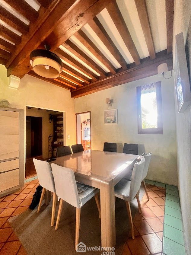 De l'autre côté, l'espace repas et la cuisine équipée.