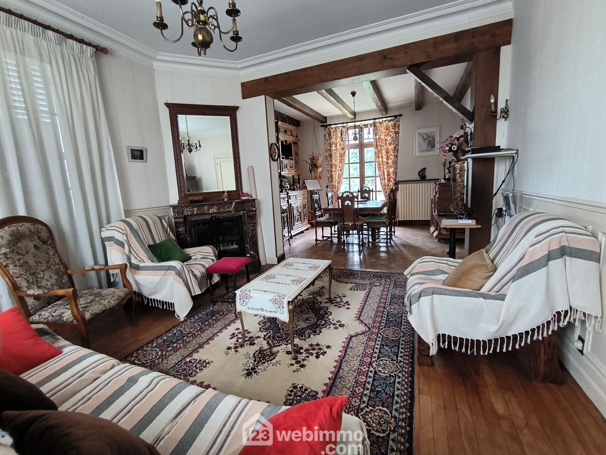 COUP DE COEUR ASSURE pour cette magnifique maison de Maître érigée sur un terrain de 1387 m² entièrement clos de mur et sans vis-à-vis. Cette demeure d'une surface habitable de 156 m² offre une belle entrée, une cuisine aménagée et entièrement équipée, un séjour double lumineux de 33 m² avec cheminée à foyer fermé, une chambre en rez-de-chaussée, une salle d'eau avec WC. Au 1er étage un palier distribue 3 belles chambres, une salle de bains et un WC indépendant. Au 2ème étage une chambre et 2 greniers aménageables. Sous-sol complet avec buanderie, chaufferie, atelier, cave et pièce de rangement. Une dépendance de 113 m² comprenant un garage pour 2 véhicules, un atelier avec poêle à bois, une pièce de rangement ainsi qu'un grenier aménageable. Un bûcher et un poulailler viennent compléter cet ensemble.