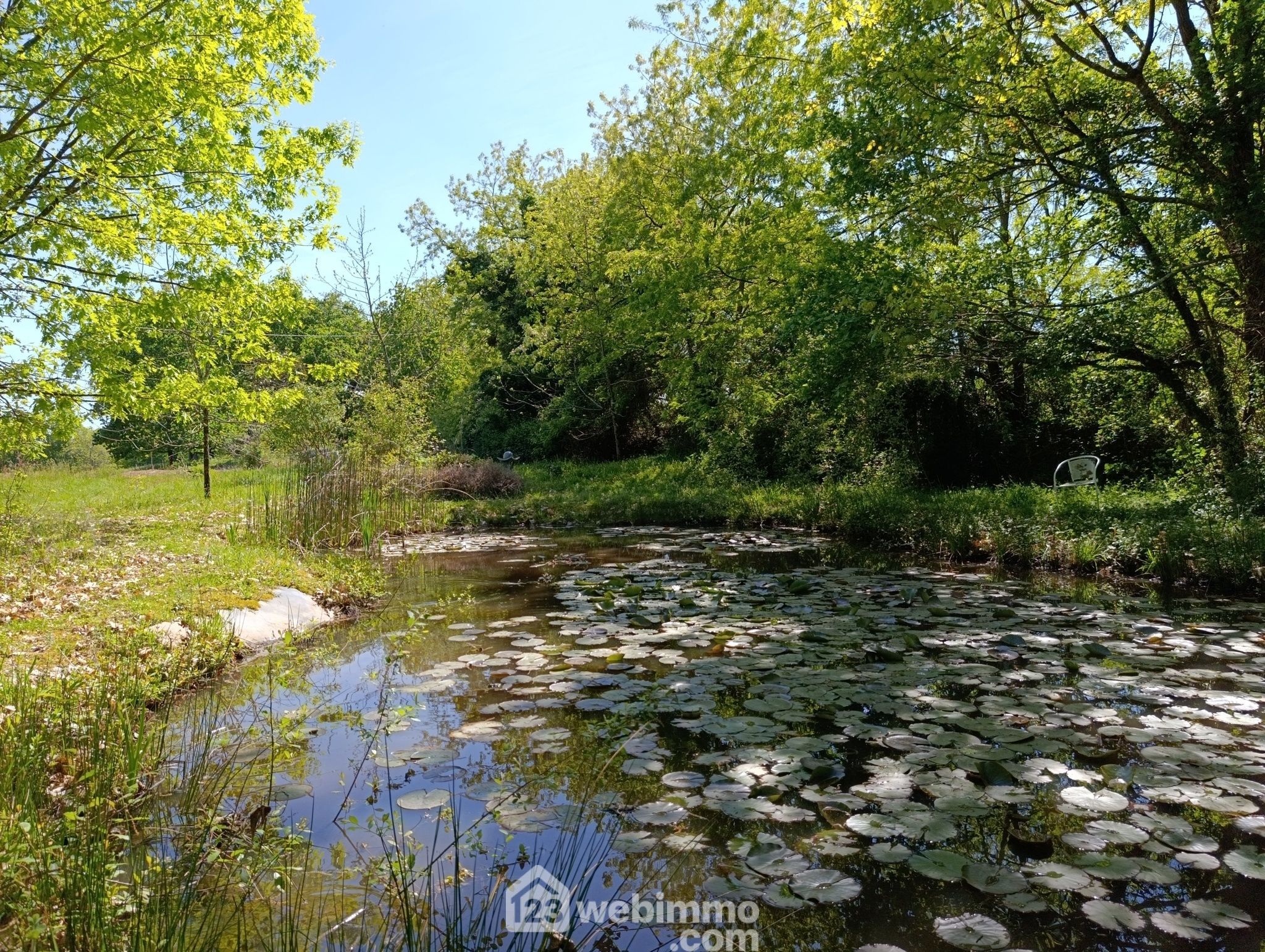 Etang avec nymphéas, carpes Koï et grenouilles