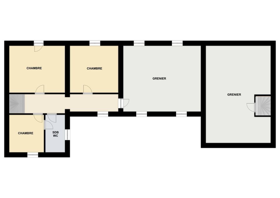 Dans le deuxième bâtiment accolé, en rez-de-chaussée : 2 pièces de 19 et 22 m2. Au 1er étage : grenier de 30 m2. Au rez-de-rue : 2 pièces de 20 et 22 m2 à aménager.