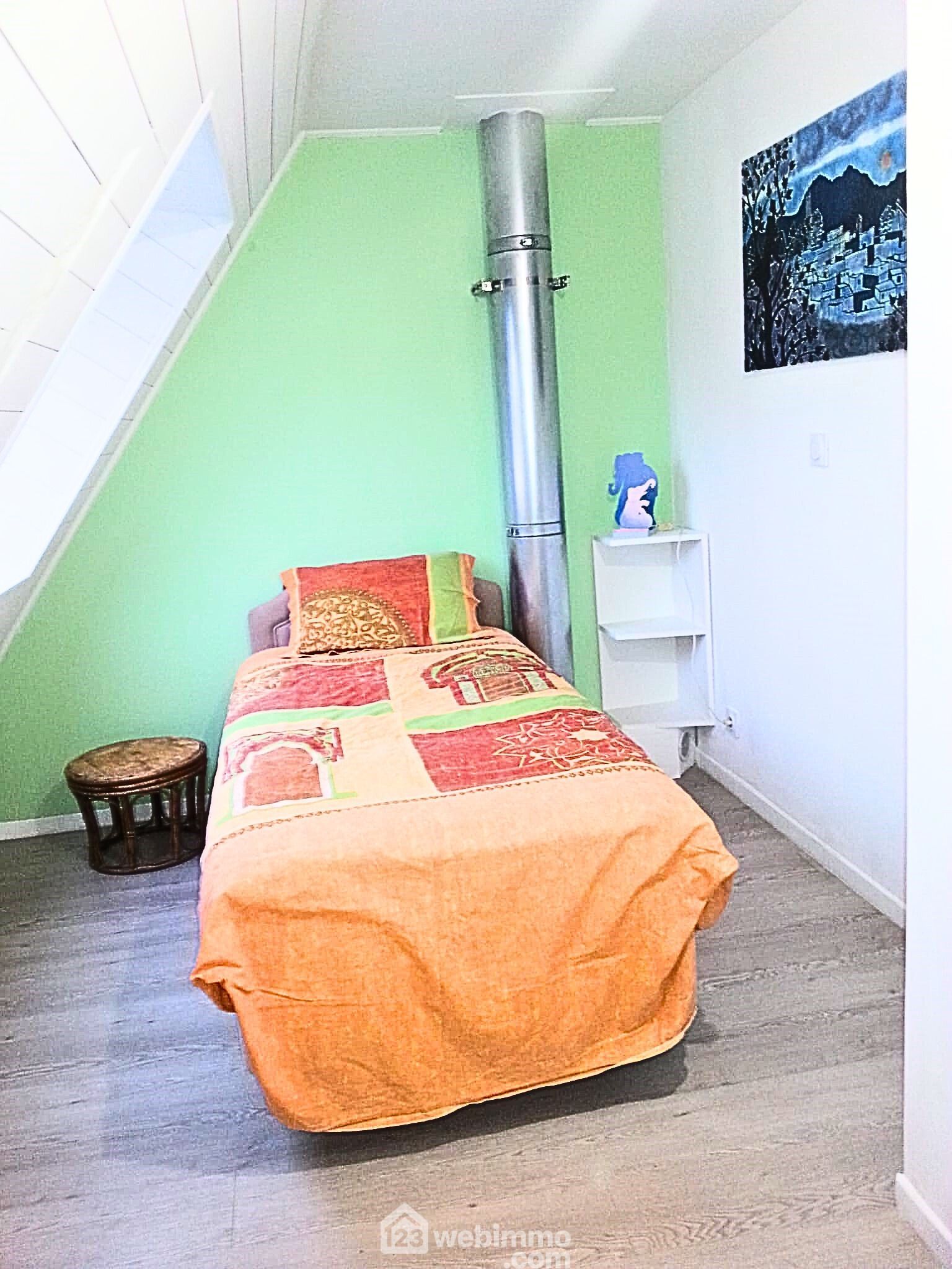 À l’étage : Une grande chambre lumineuse idéale en suite parentale, Deux chambres d’amis sous les toits, pleines de charme, Une salle d’eau avec WC, fonctionnelle et bien agencée.