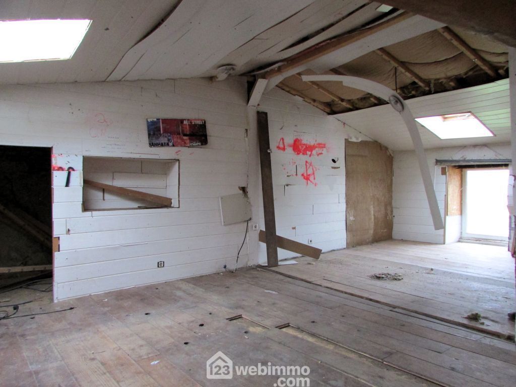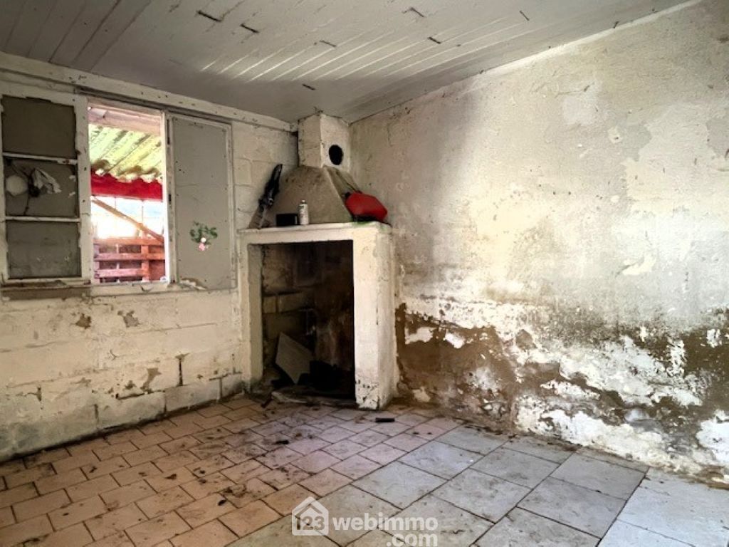 Maison 103 m2 habitables (150 m2 possibles), à rénover totalement, sur terrain de 1 660 m2 environ.