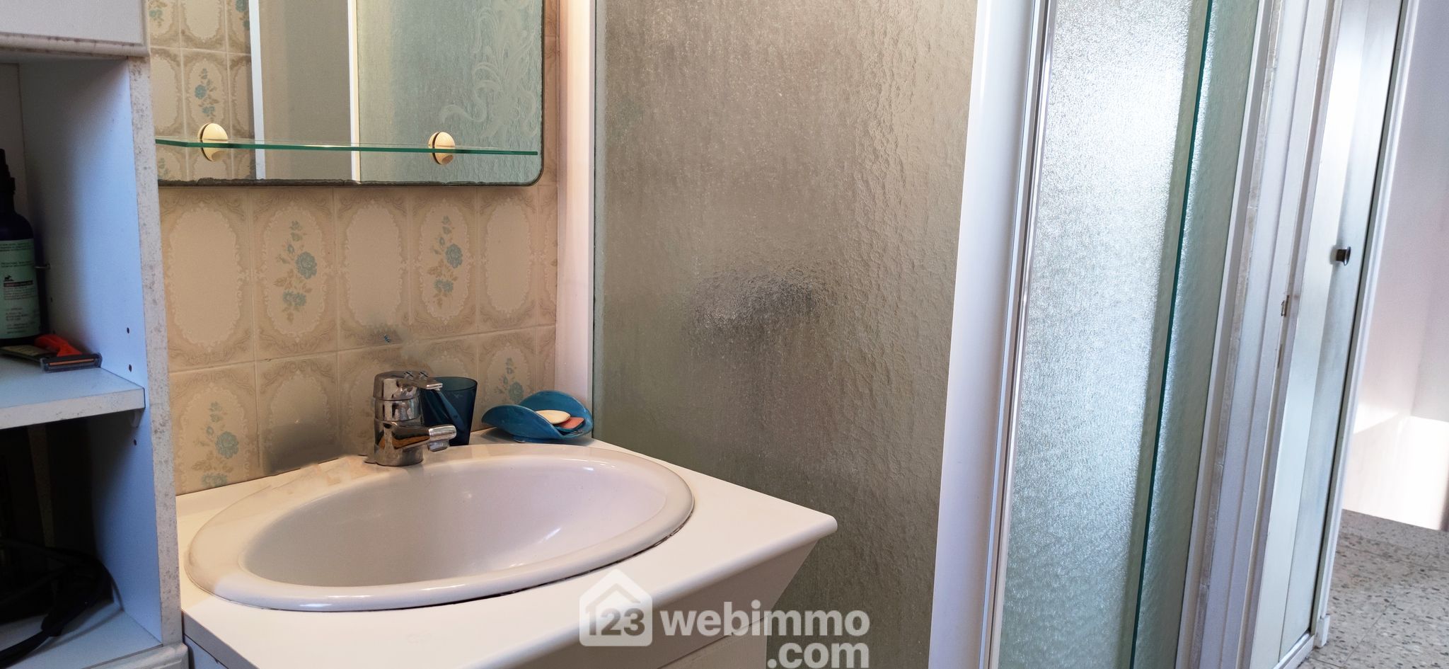 A l'étage, 1 pièce de vie lumineuse avec sa cuisine, 1 chambre de 11m², 1 salle d'eau avec WC, 1 balcon orienté sud .
