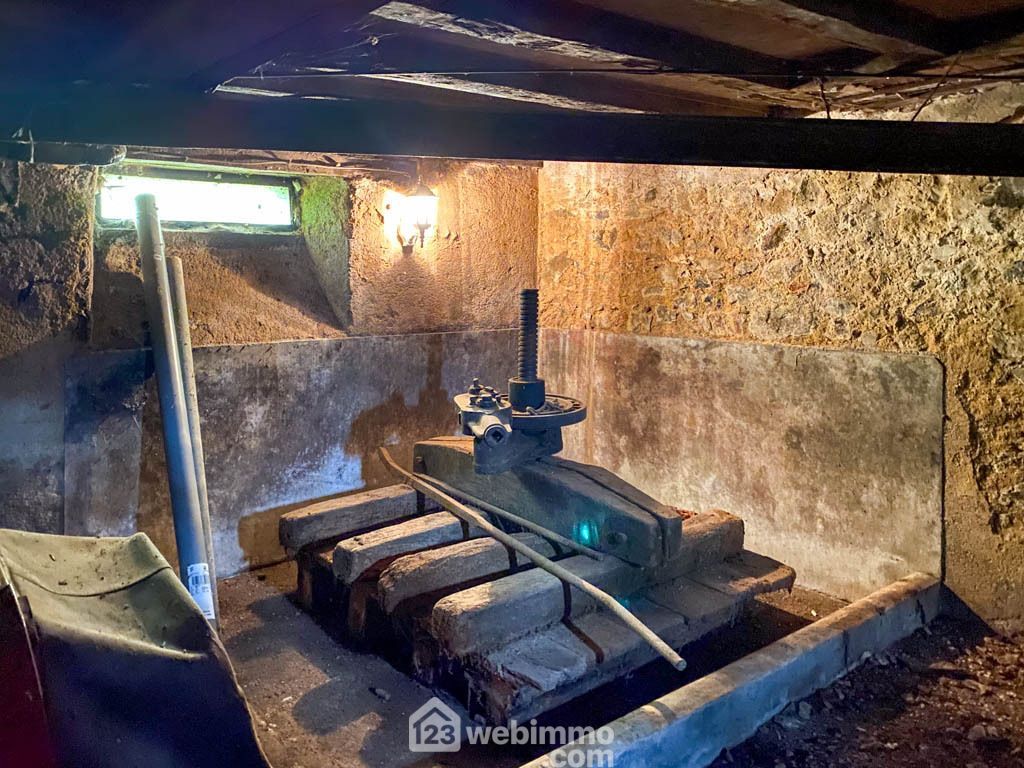 Vous profiterez également d'un garage avec porte motorisée, une cave ayant conservé son vieux pressoir, un cabanon en pierre pour du stockage supplémentaire. Chauffage au fuel, ouverture PVC double vitrage, puits.