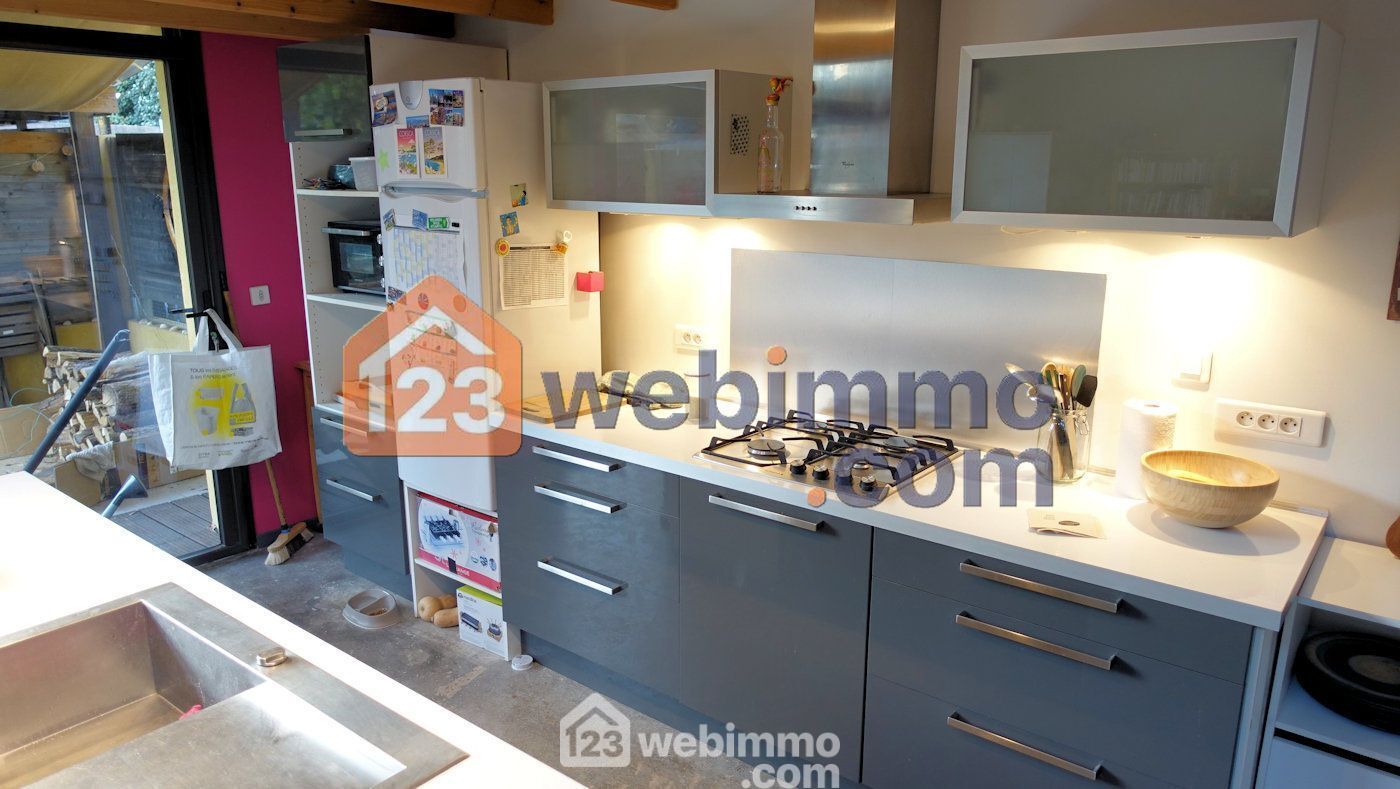 La maison est équipée d'une pompe à chaleur avec plancher chauffant/rafraîchissant, d'un poêle moderne, de Velux et d'une grande baie vitrée en aluminium de 3m x 3m, tous avec volets roulants électriques.