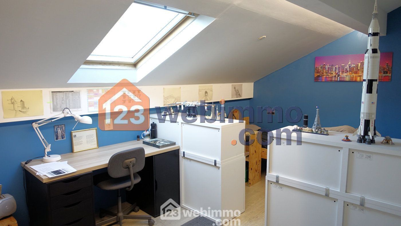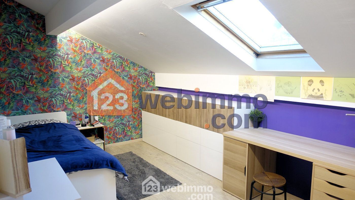 À l'étage, deux chambres sous-pente de 13 m² chacuneet une seconde une salle de bain double vasque avec rangements et un second WC, offrant un confort optimal pour toute la famille.
