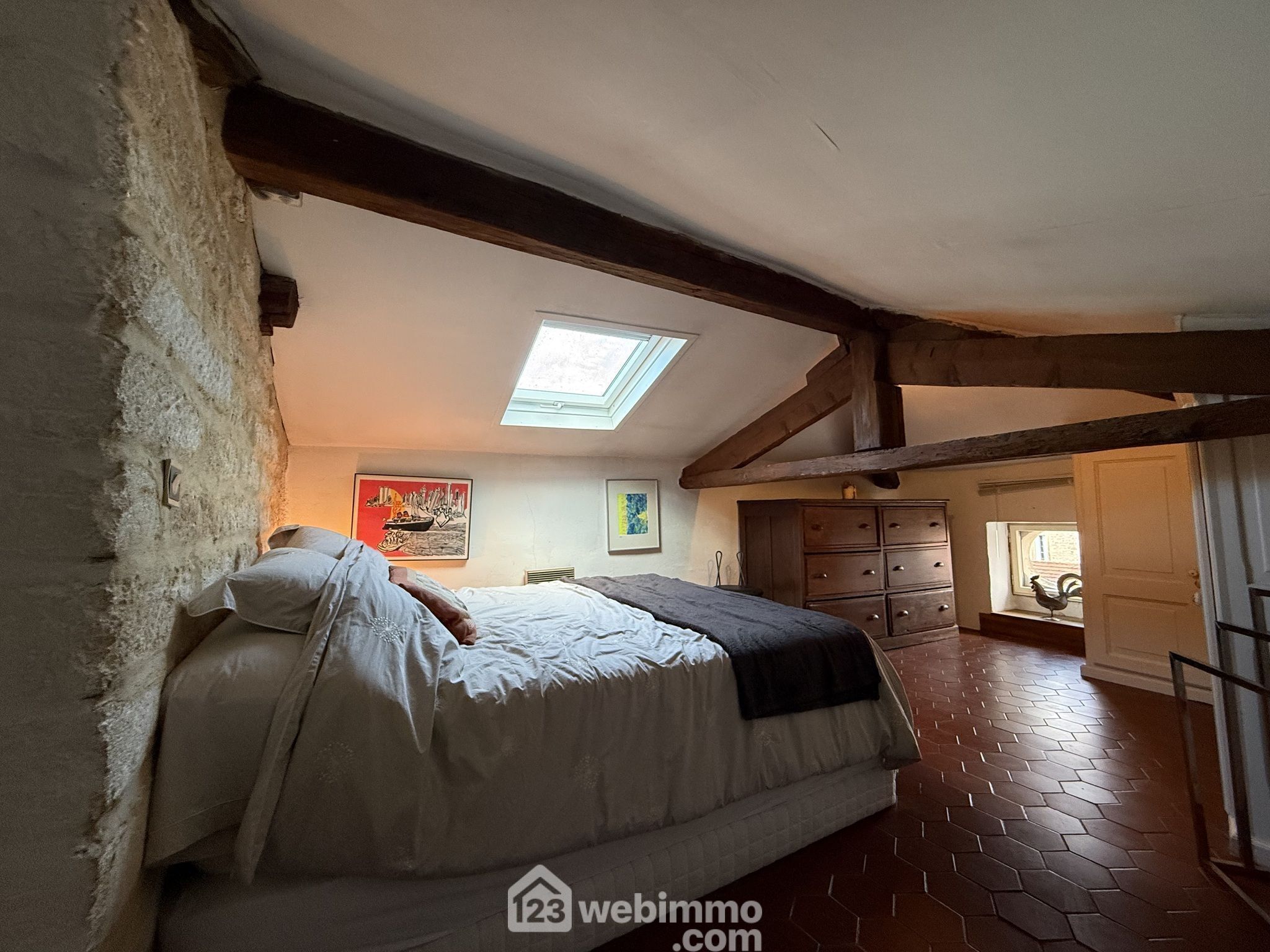 Des combles aménagés offrent trois espaces supplémentaires, actuellement utilisés en chambre, salon et bibliothèque.