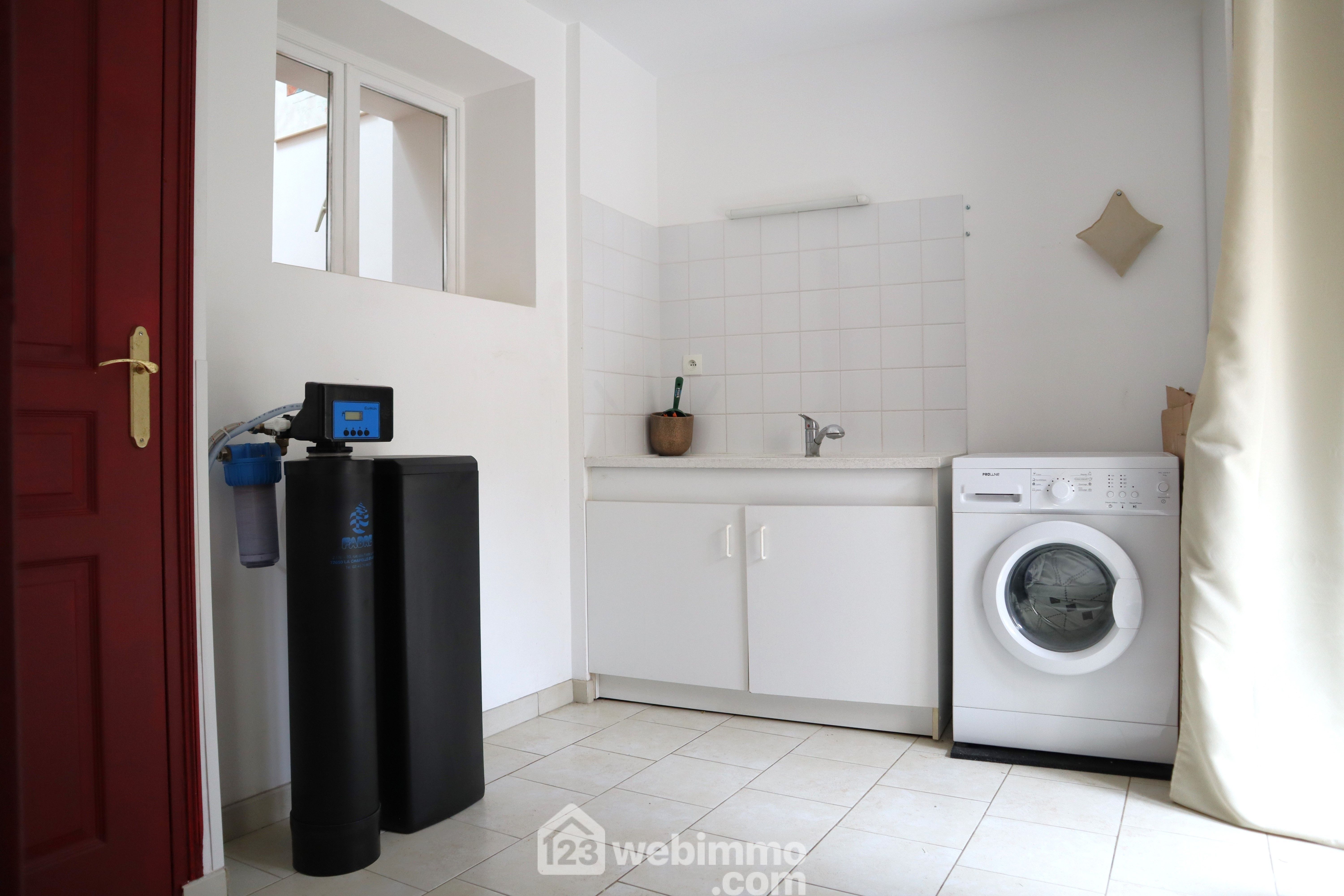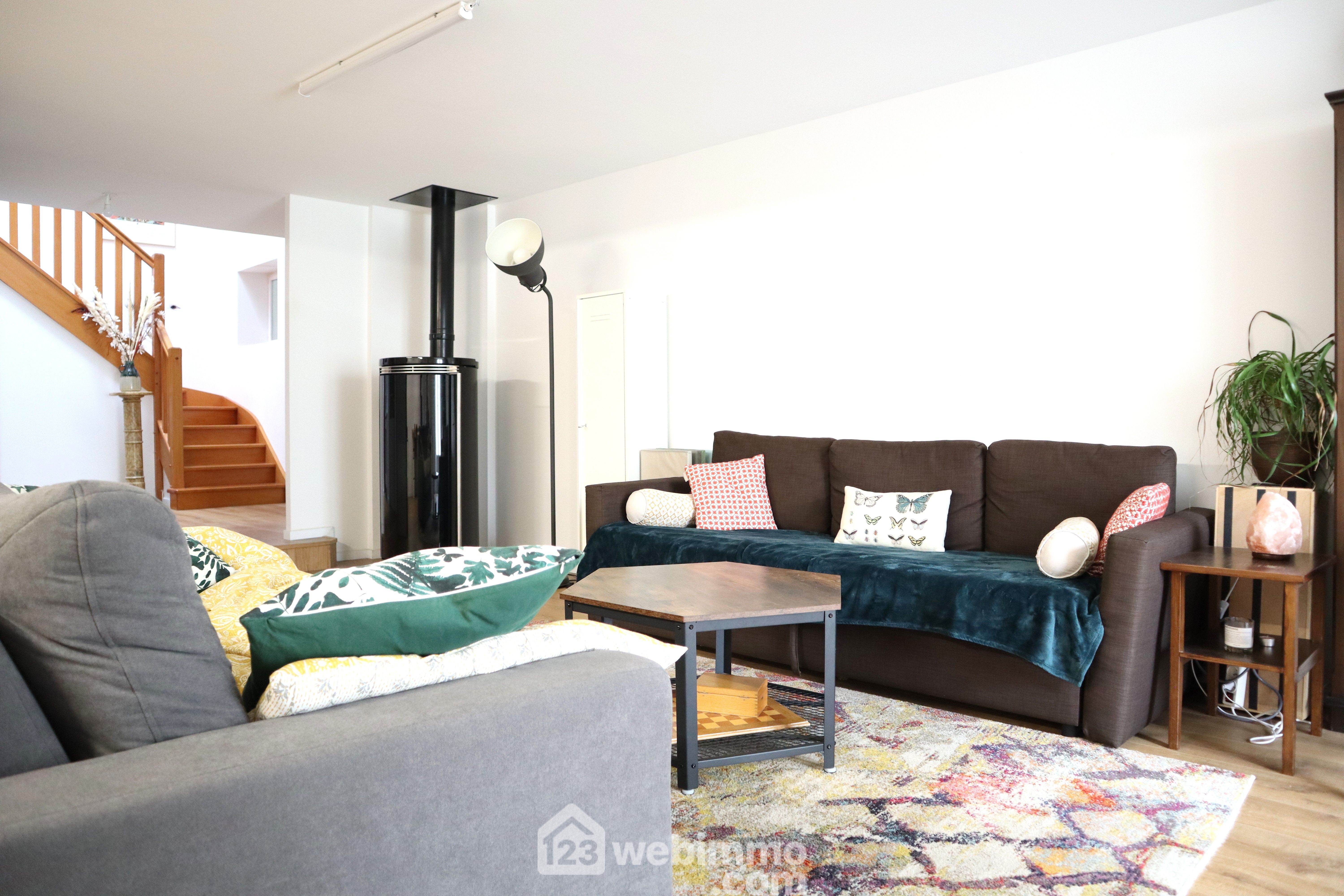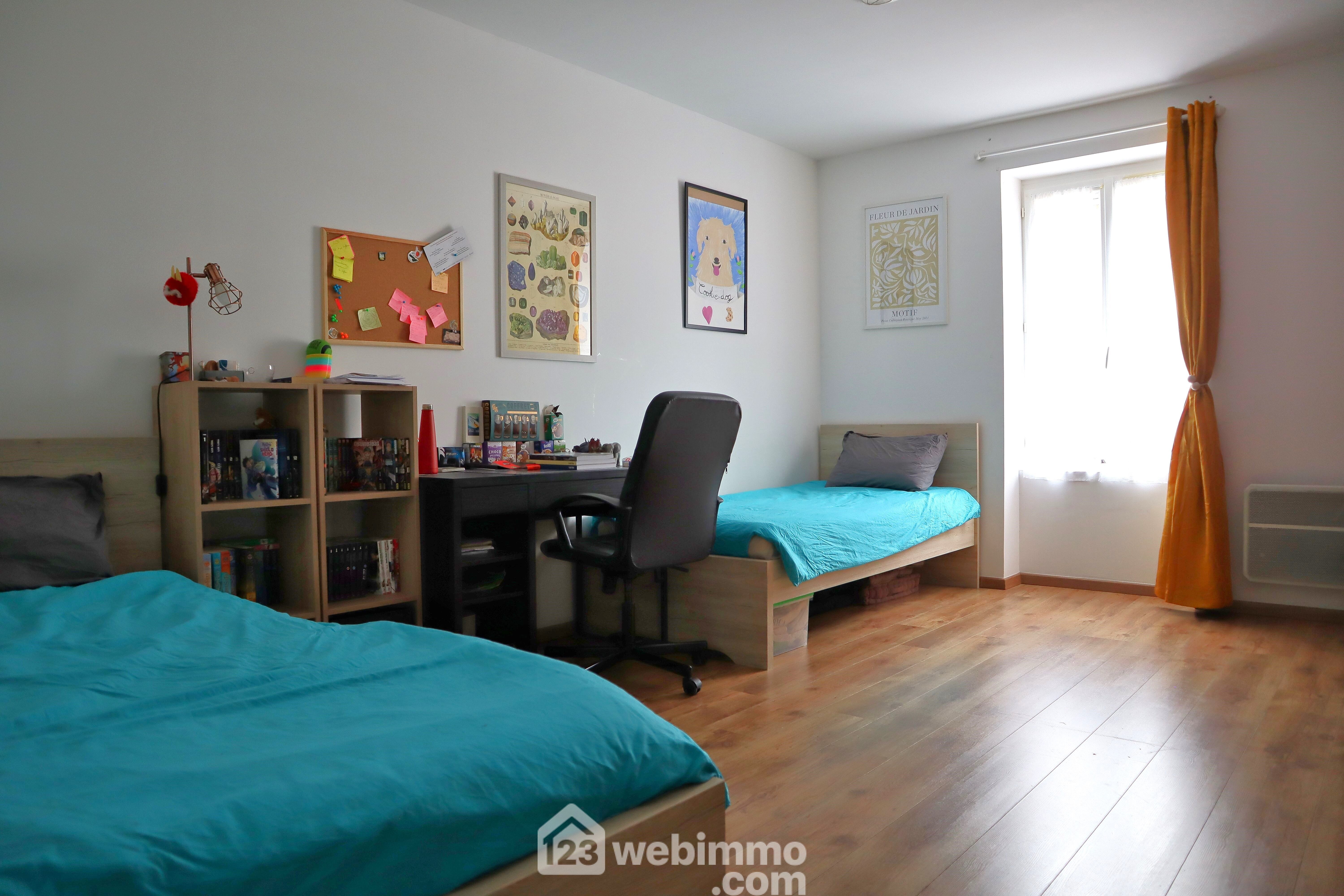 Maison en pierre, 215 m2 habitables, 8 pièces, 5 chambres. Terrain de 400 m2 avec garage double.