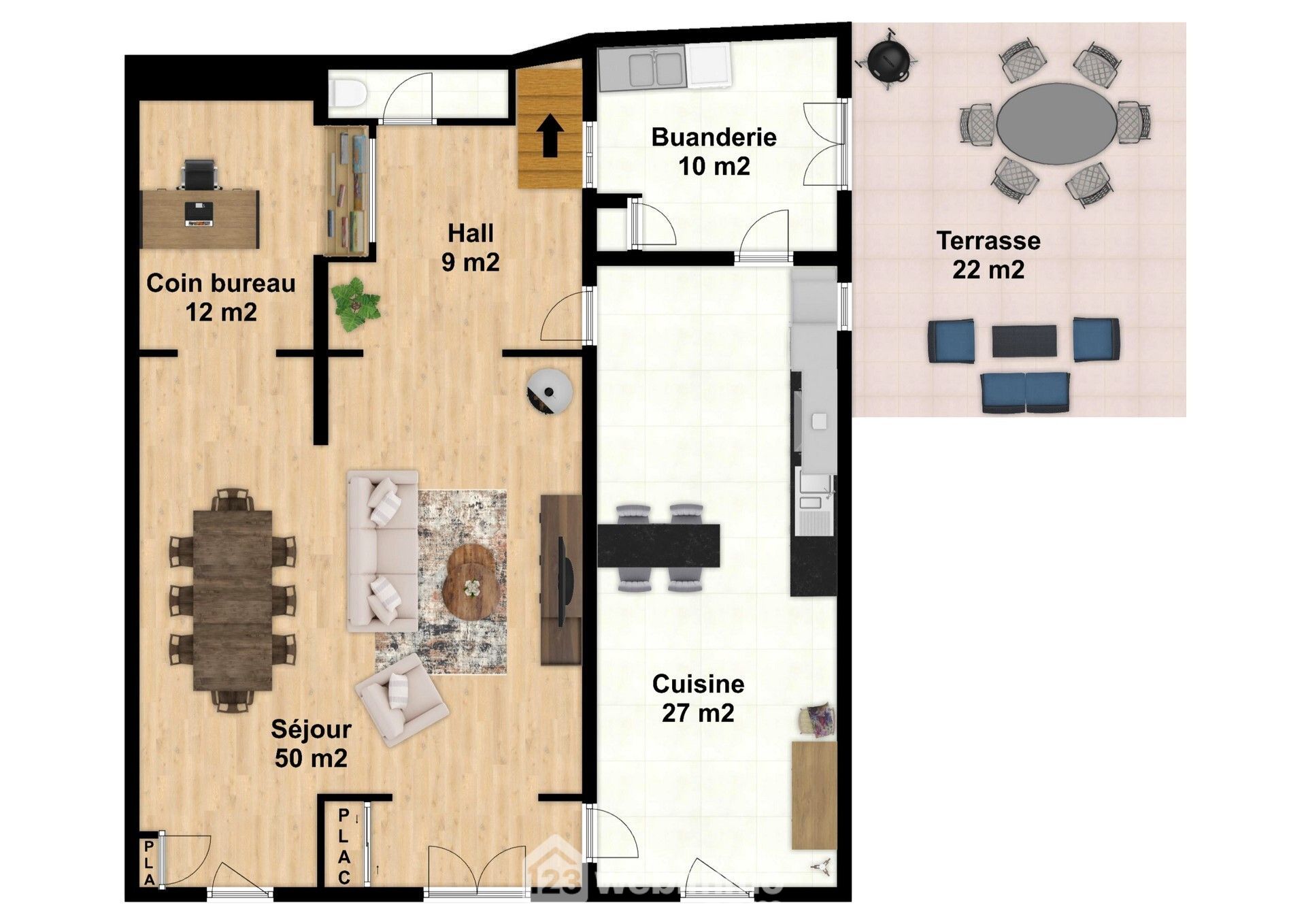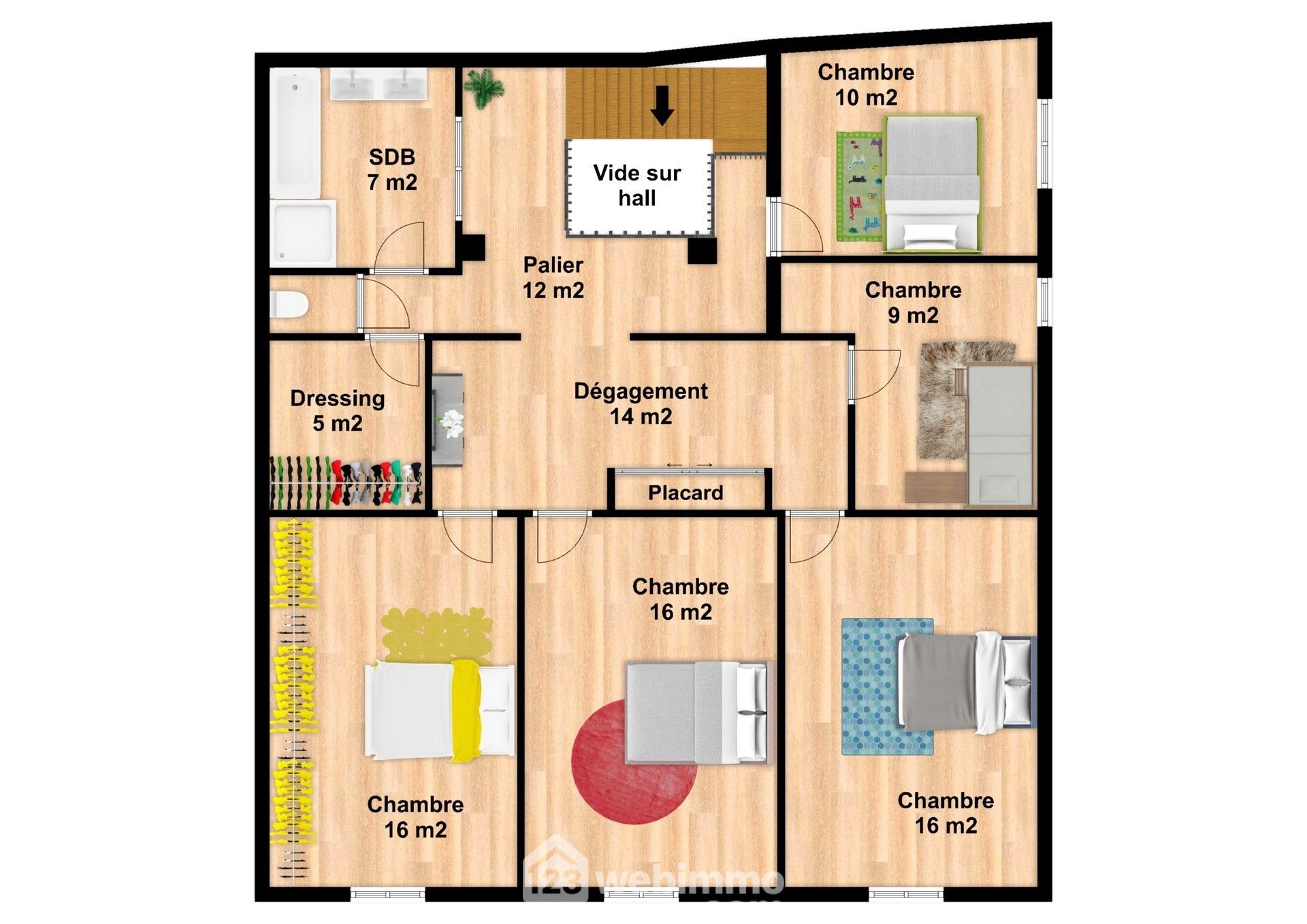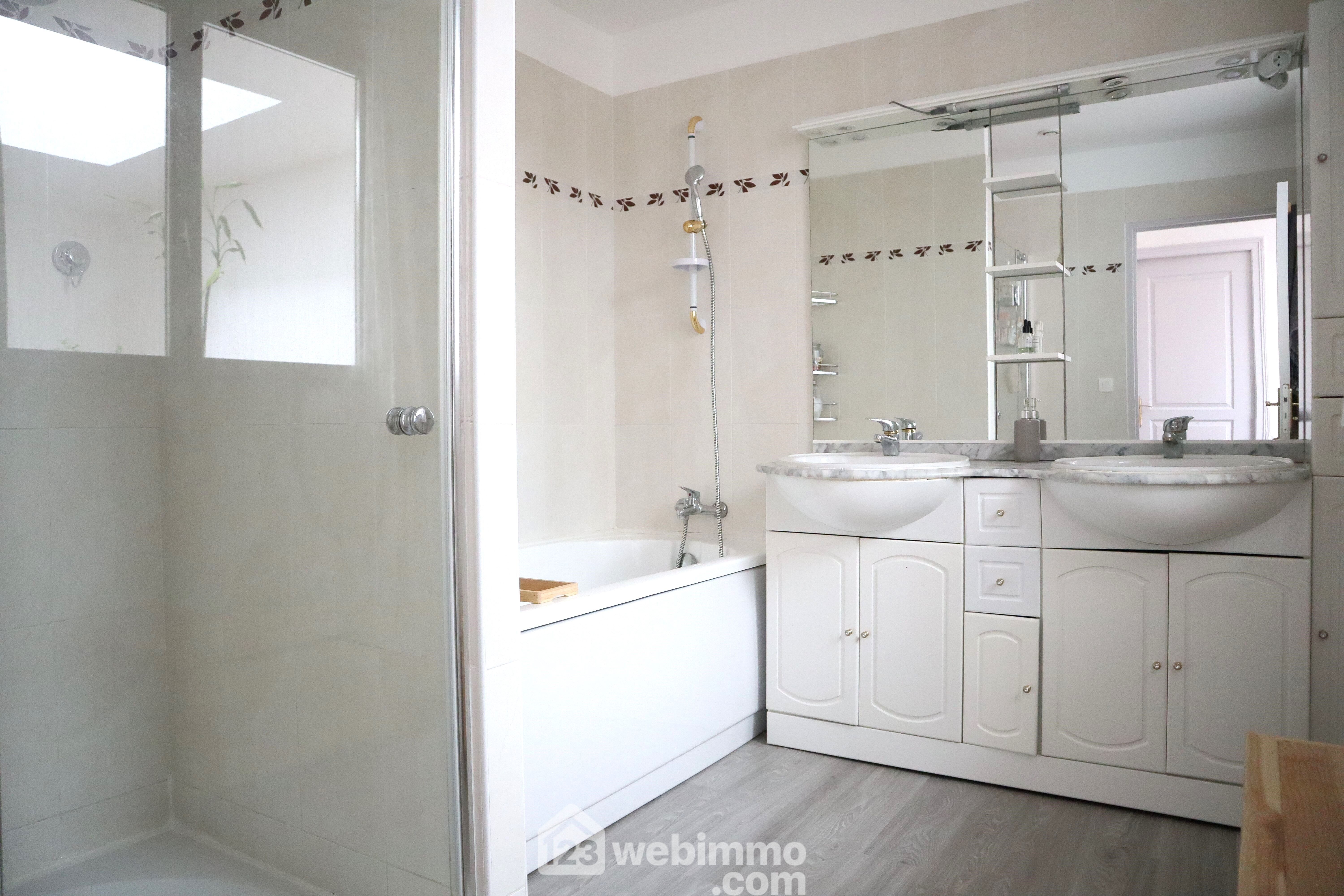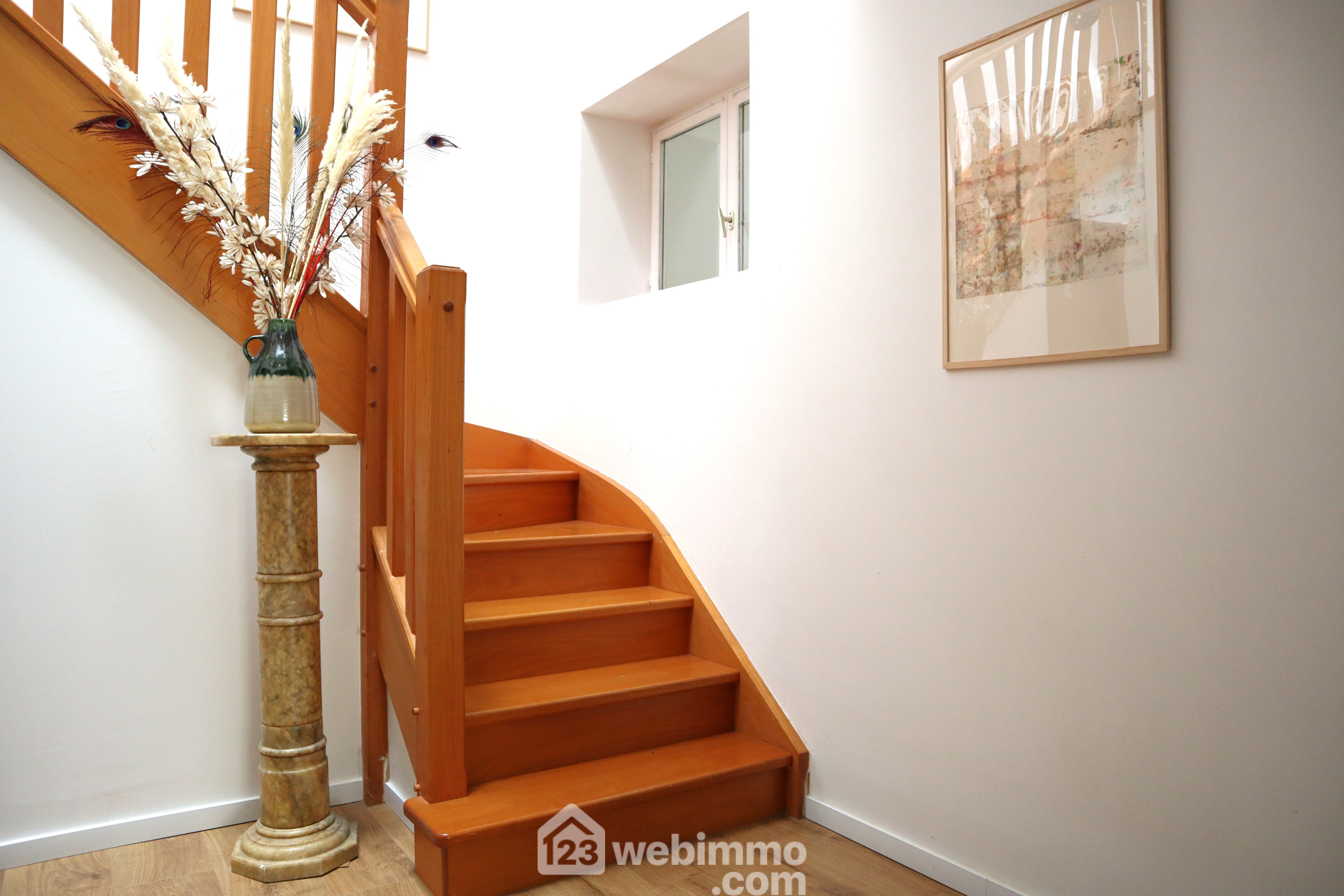 Maison en pierre, 215 m2 habitables, 8 pièces, 5 chambres. Terrain de 400 m2 avec garage double.