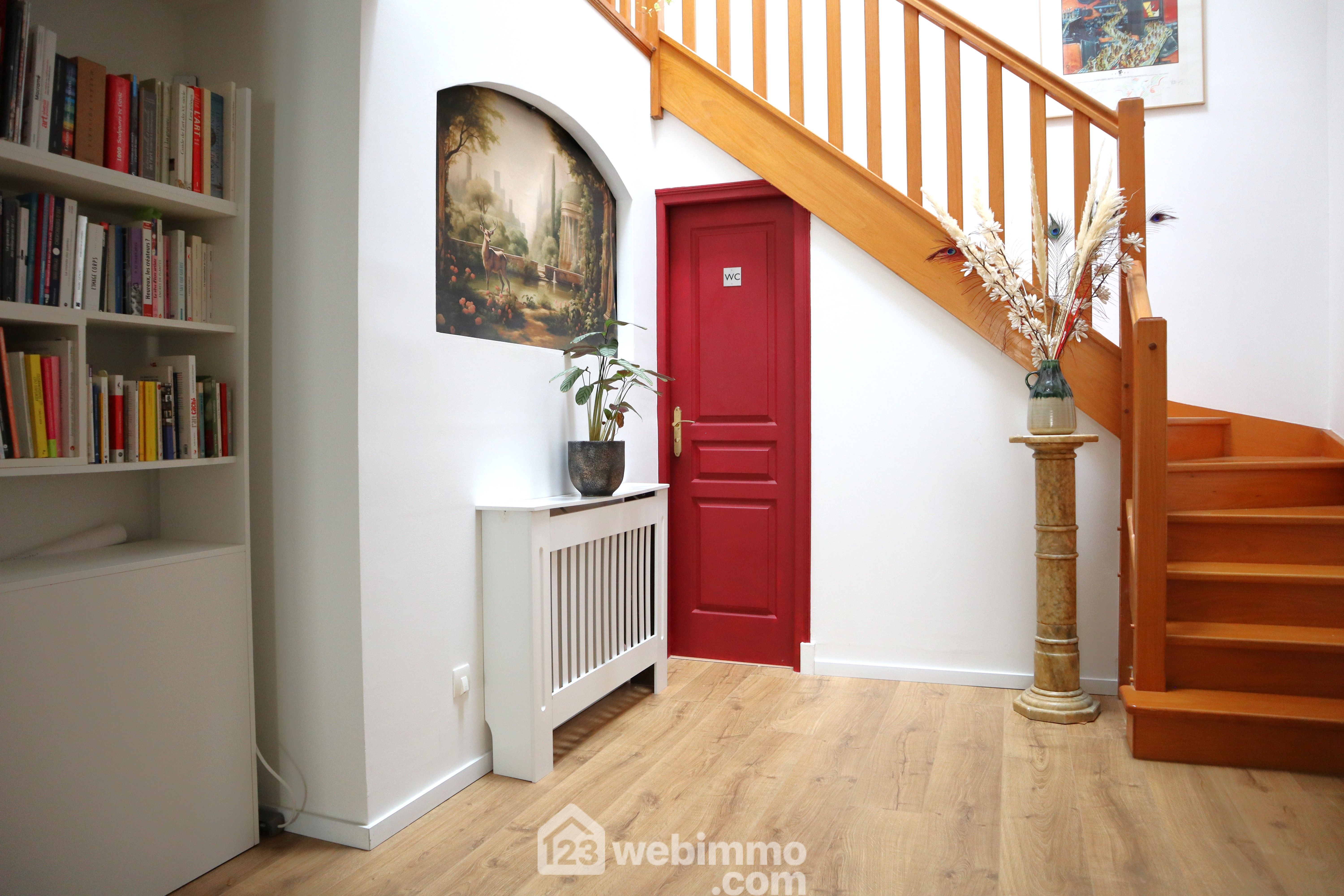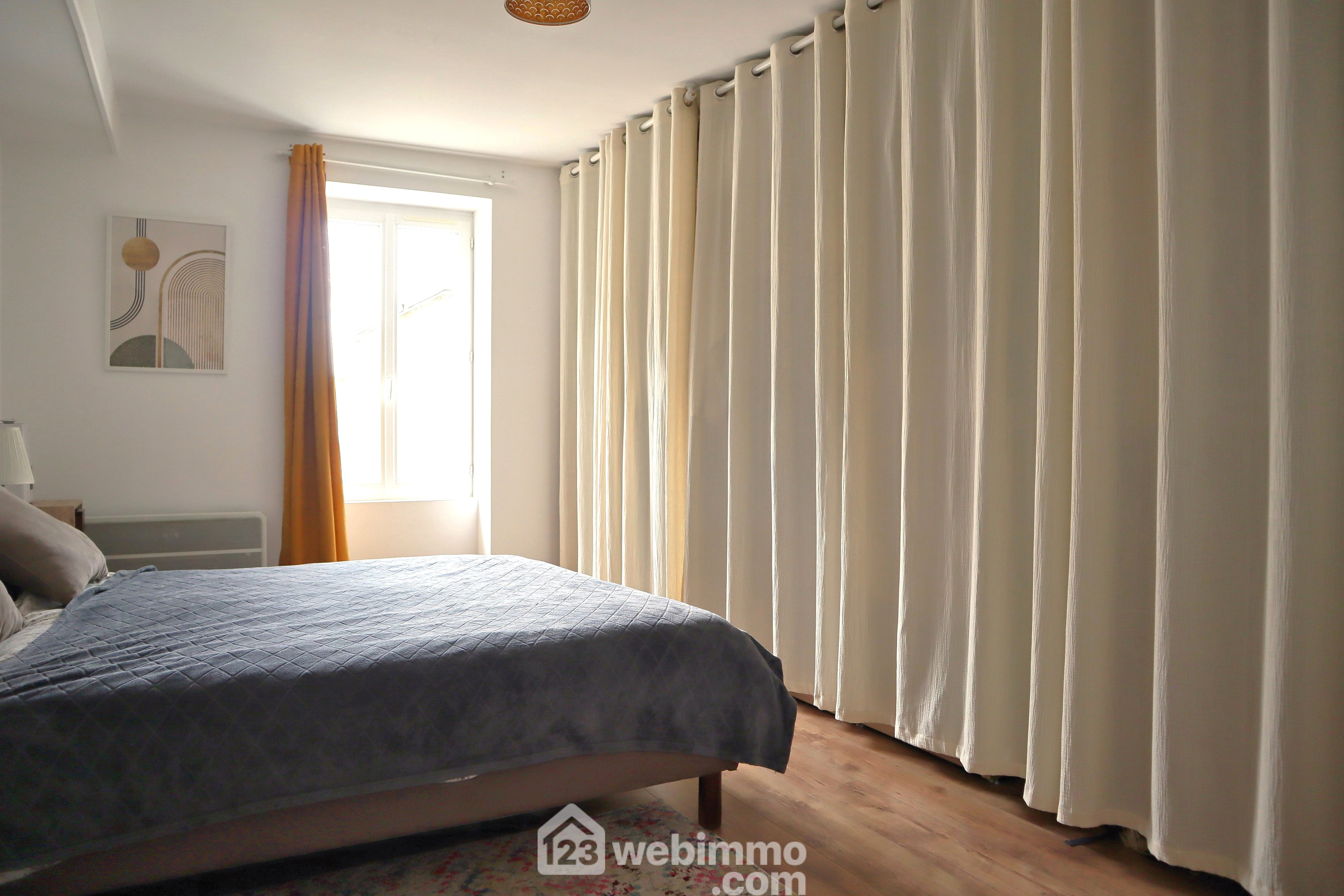 86210 Archigny, dans le bourg du village. Maison en pierre entièrement restaurée. Au rez-de-chaussée : séjour de 61 m2 avec placards, poêle à granules et espace bureau, vaste cuisine aménagée et équipée de 27 m2, buanderie avec rangements, hall, WC et terrasse. A l'étage : palier, salle de bain avec douche, WC, dressing, dégagement et 5 chambres. Très bonne isolation avec DPE en C, adoucisseur, double vitrage. Grand garage double de 59 m2 face à la maison sur un terrain enherbé de 228 m2. Aucuns travaux à prévoir.