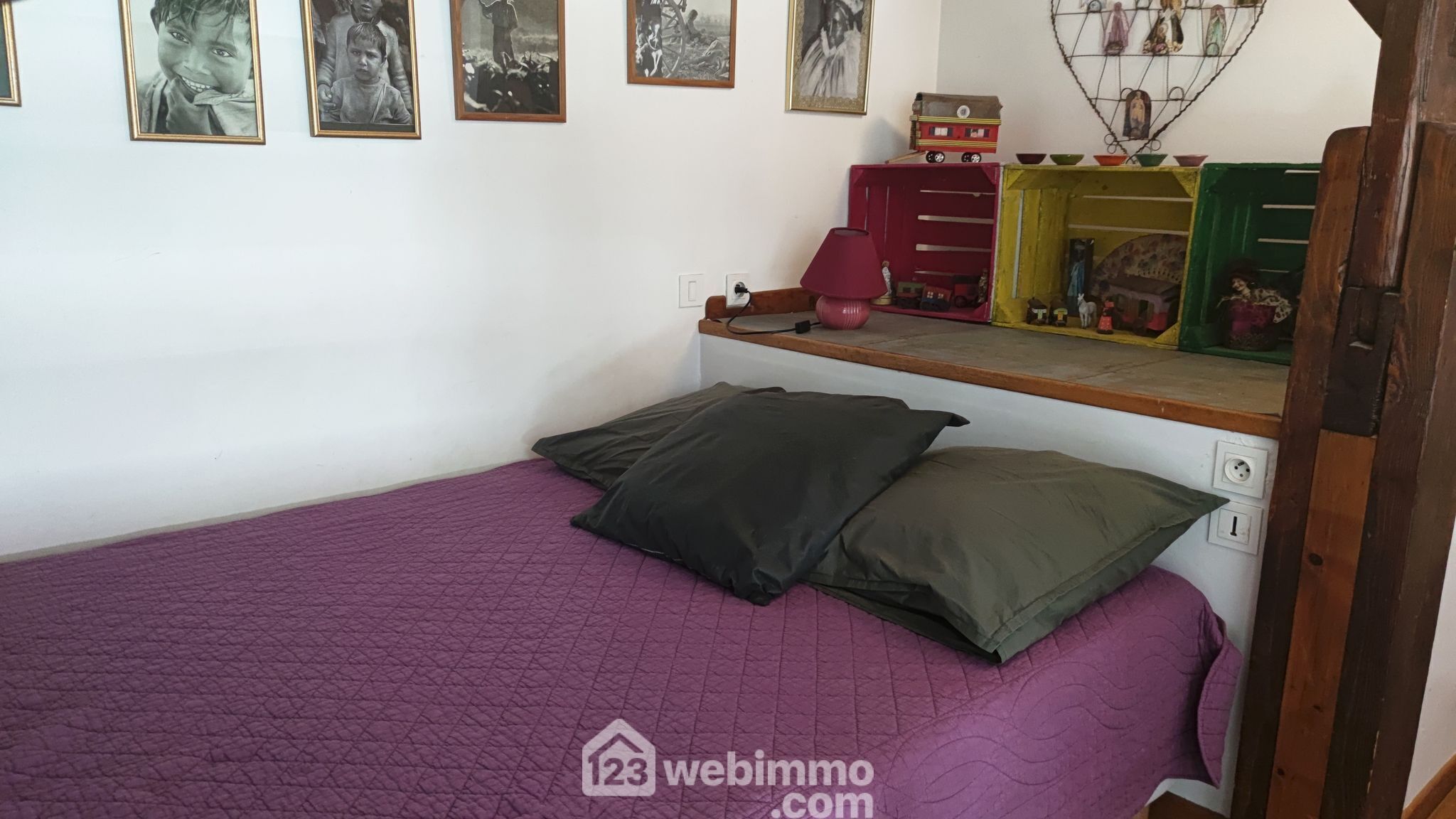 - Une chambre en mezzanine, optimisée et aménagée avec un lit en 140 cm et un lit en 90 cm.
