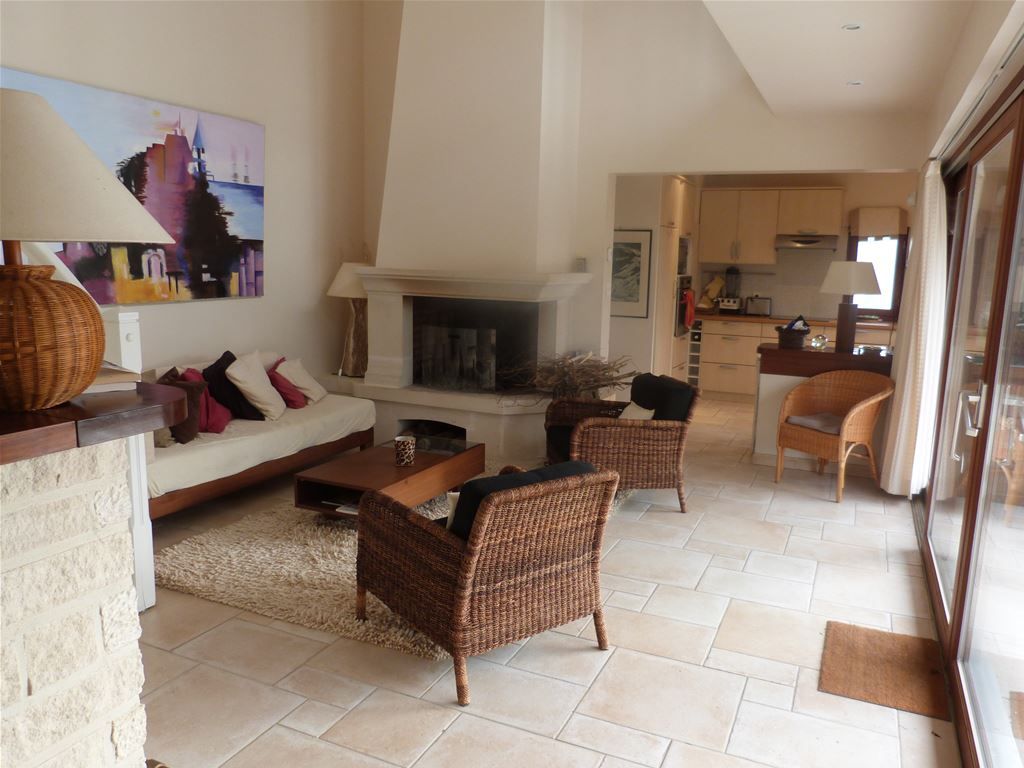 D'une surface de 80 m², elle comprend en rez-de-chaussée : séjour-salon avec cheminée et accès terrasse, cuisine ouverte équipée, espace séjour, wc séparé. A l'étage, 2 chambres, 2 salle de bains - wc. Grande dépendance, et carport.