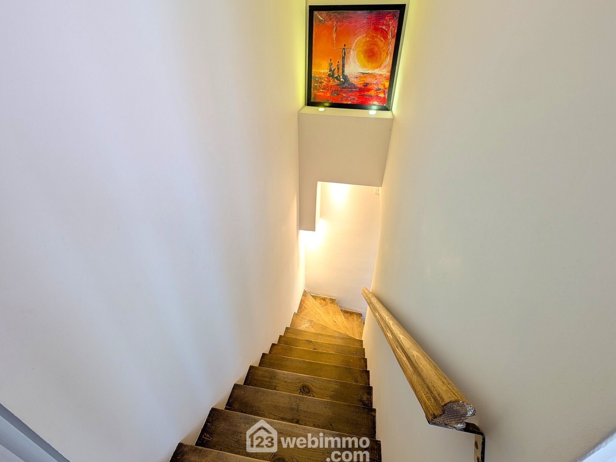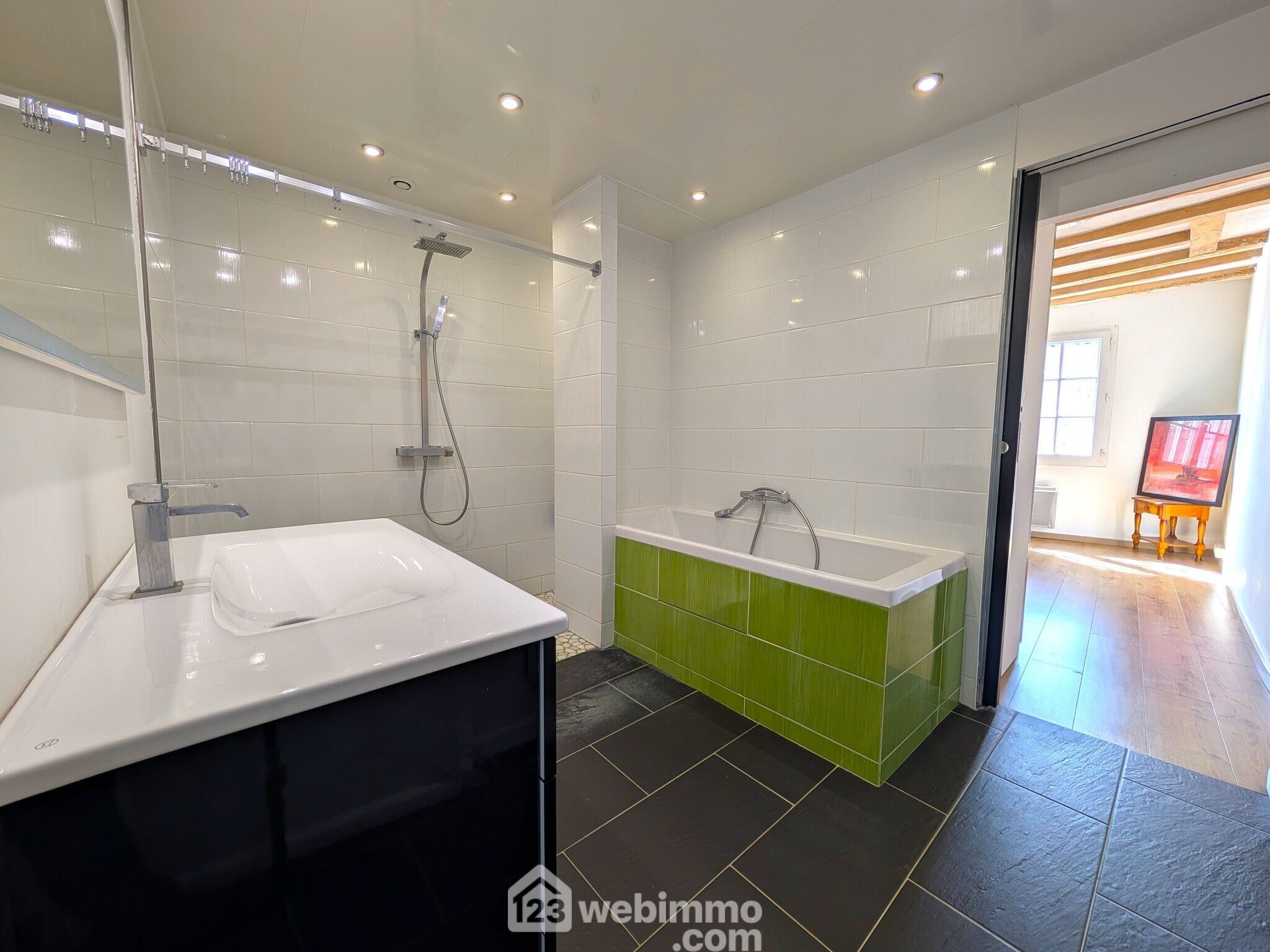 À l’étage : deux chambres, un espace bureau, une salle de bain avec douche et baignoire, ainsi qu’un second WC indépendant.