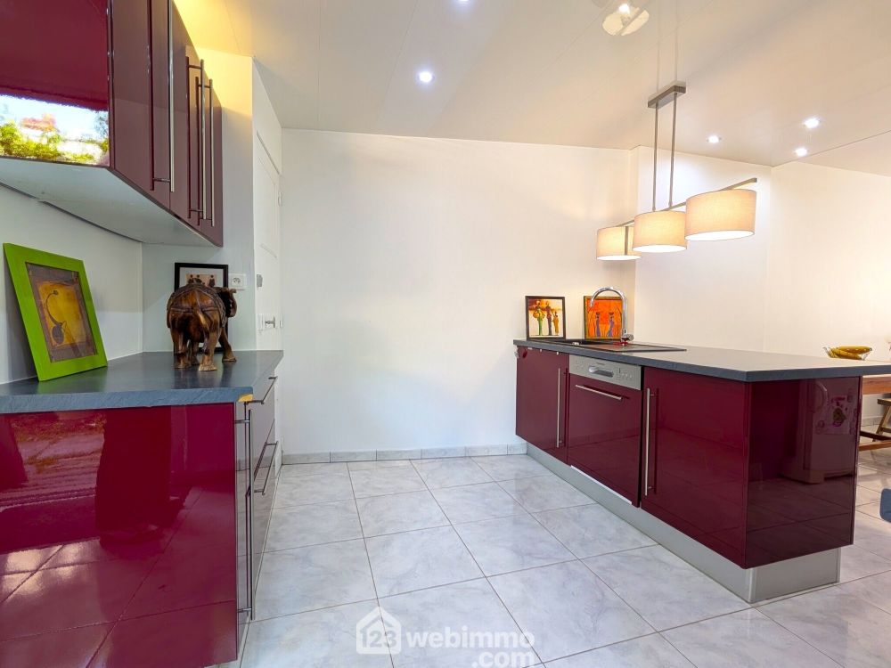 Au rez-de-chaussée : un salon avec cuisine aménagée et équipée, une buanderie, et des WC séparés.