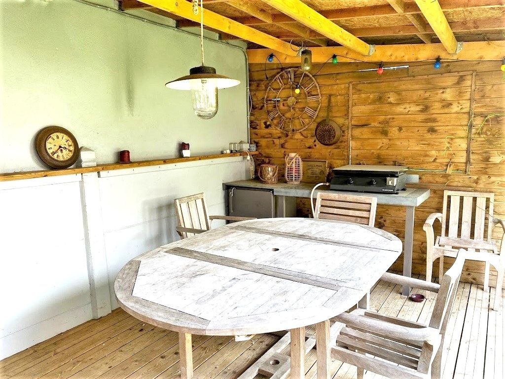 49300, la maison se compose d'une entrée donnant sur un salon séjour de 22.10m². La cuisine est équipée et réalisée en 2007 avec coin repas de 21.60m², l'ensemble est dans une véranda isolée et chauffée. Une chambre de 14.40m² (possibilité de faire une suite parentale), un WC séparé, une buanderie de 6.50m² et un garage de 25m² terminent le niveau. A l'étage, le pallier de 2.25m² distribue 3 chambres ( 12.40m², 11.65m² et 9m²) et une salle d'eau de 5m². A l'extérieur, une cuisine d'été de 17m², une terrasse bois de 20m², une cabane bois de rangements et un puits agrémentent le jardin. Les menuiseries sont en PVC avec volets roulants électriques sauf pour la baie de la cuisine en bi matériaux (ALU et Bois). La porte d'entrée est en bois multipoint. La toiture est en bon état et l'électricité a été refaite en 2007. L'assainissement est collectif.