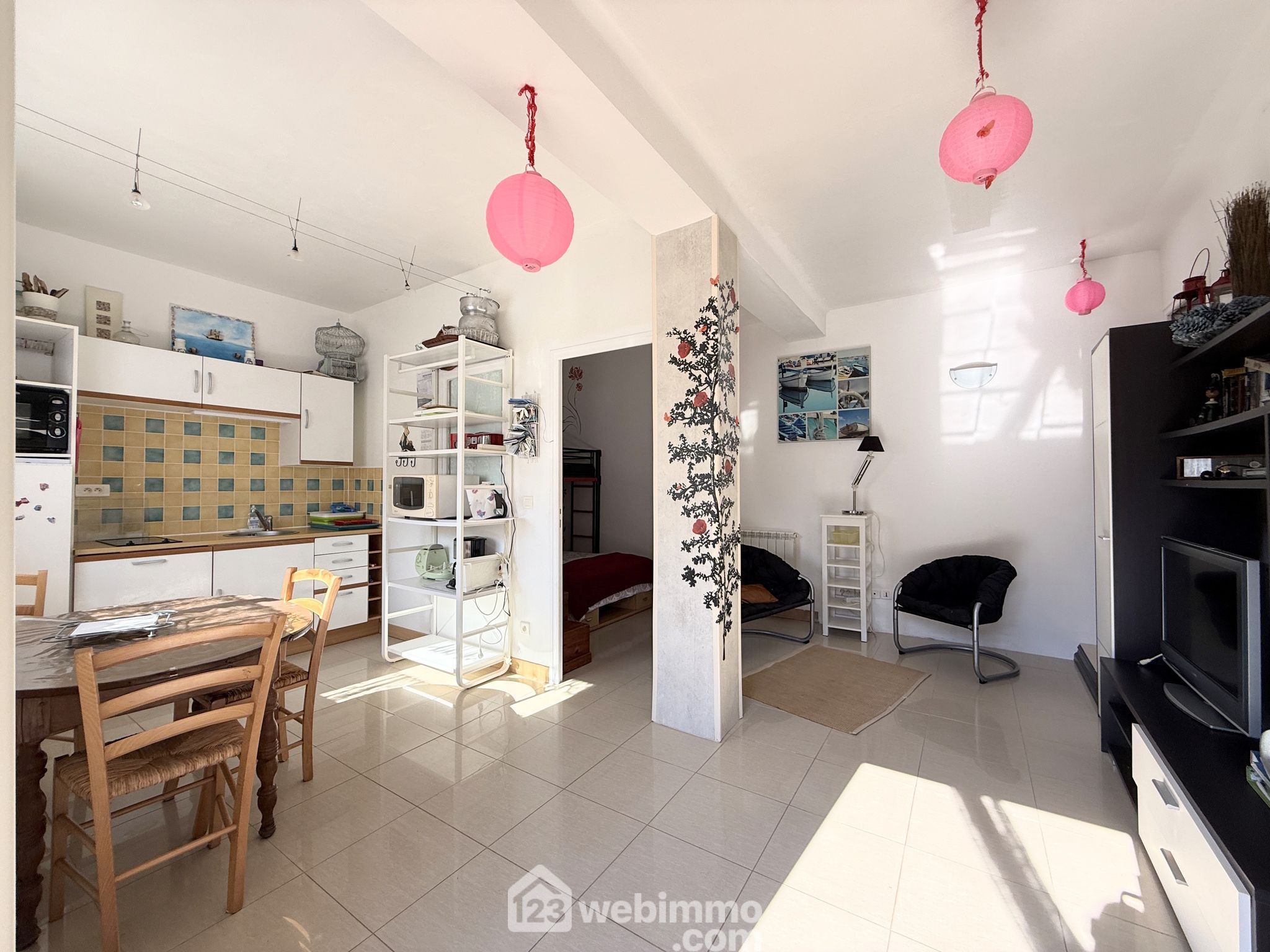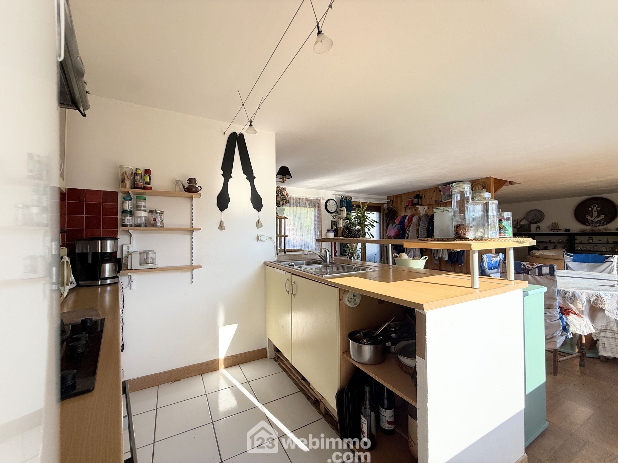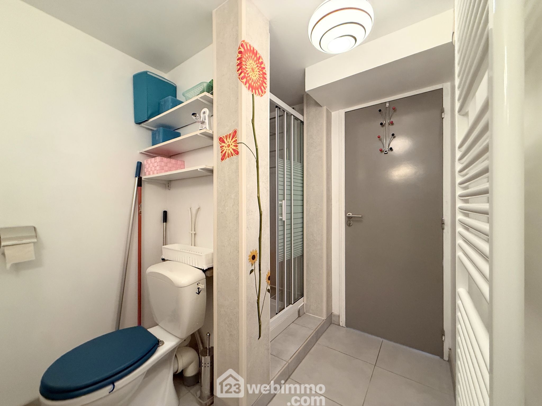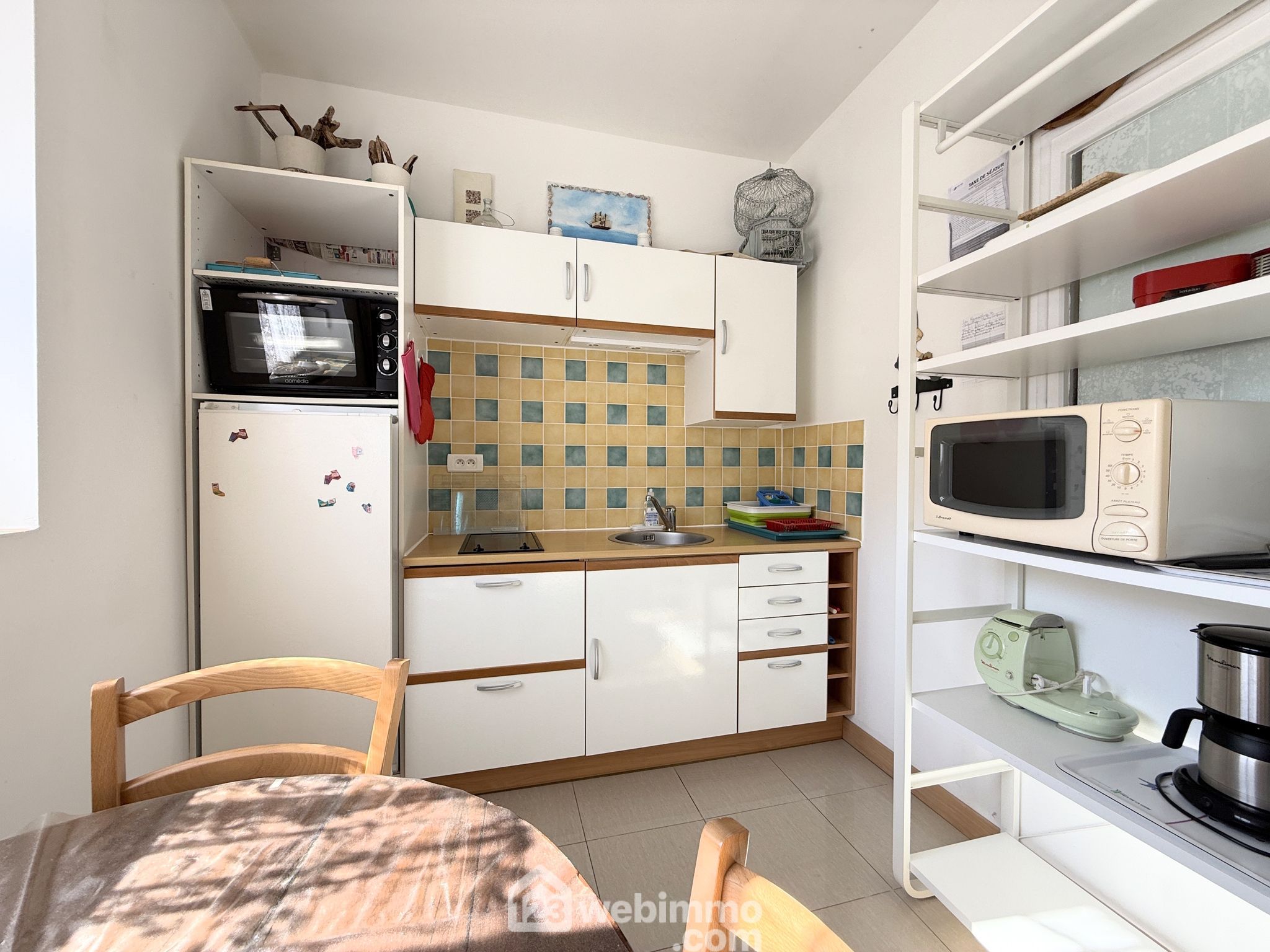 Au rez-de-chaussée, l'appartement de type T2 de 42 m², s'ouvre sur une belle pièce de vie de 28m2 renfermant une cuisine ouverte et un espace salon, une chambre de 10m2 et une salle de douche avec WC de 4m2. Sa configuration actuelle lui permet d'accueillir jusqu’à 5 personnes en location estivale.