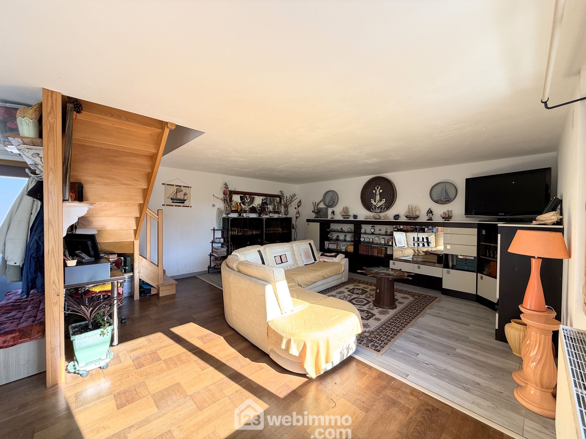 Accessible par un escalier extérieur, le duplex de type T3 de 70m2 comprend une entrée desservant une grande pièce de vie d’environ 45 m² gorgée de lumière comprenant une cuisine aménagée et équipée, un espace salle à manger et un beau salon. Une salle de douche de 4,5m2 avec WC complète ce niveau. À l'étage le palier dessert 2 chambres de 12 et 14m2 ainsi qu'un WC indépendant.