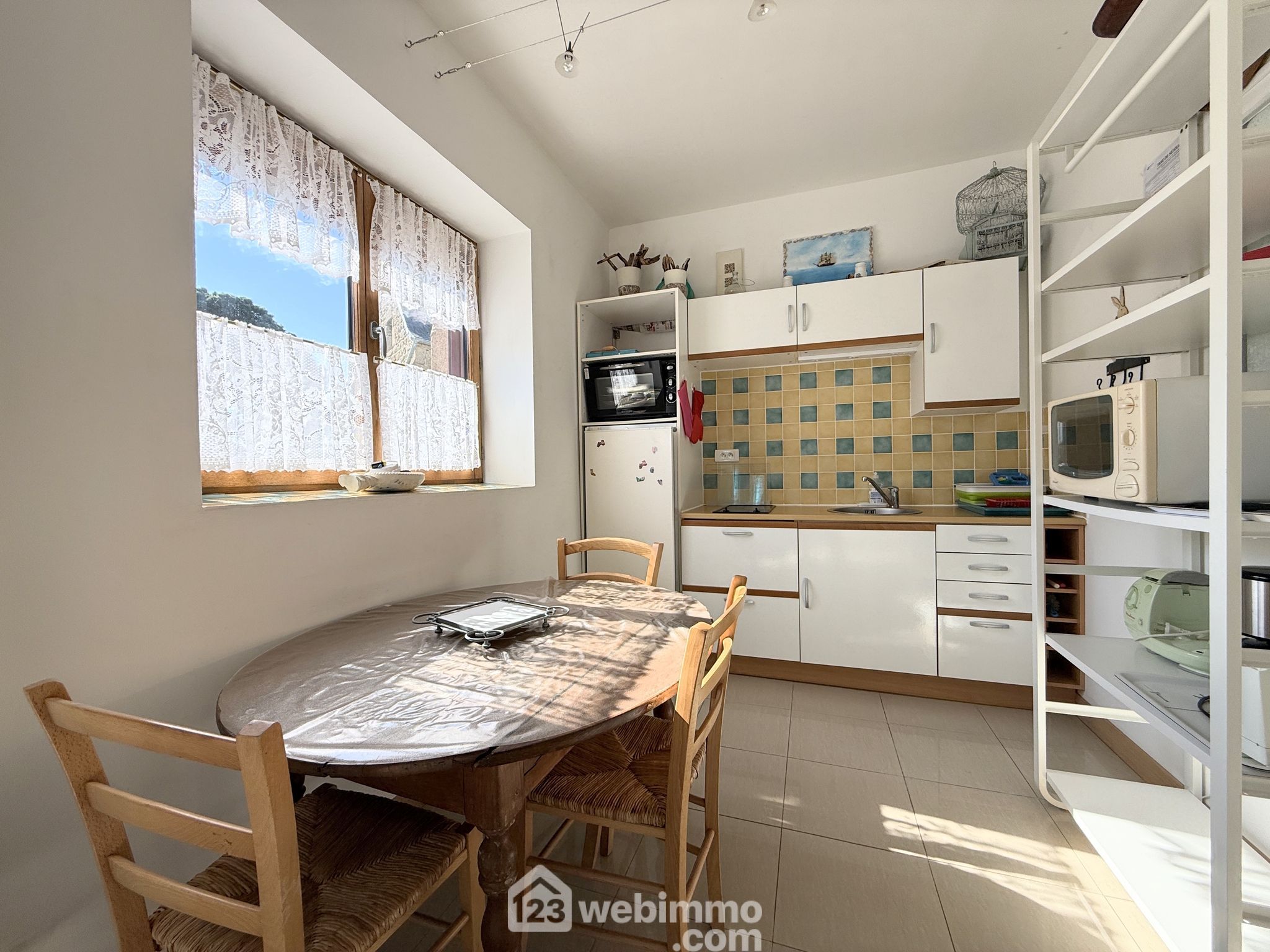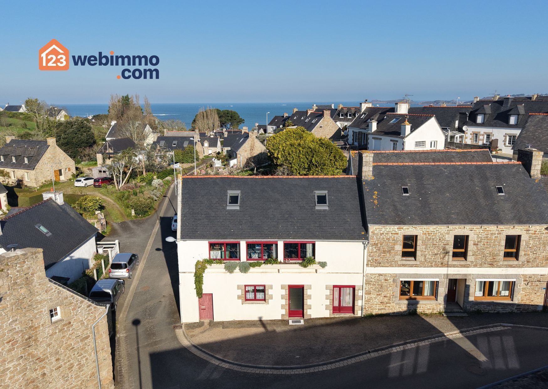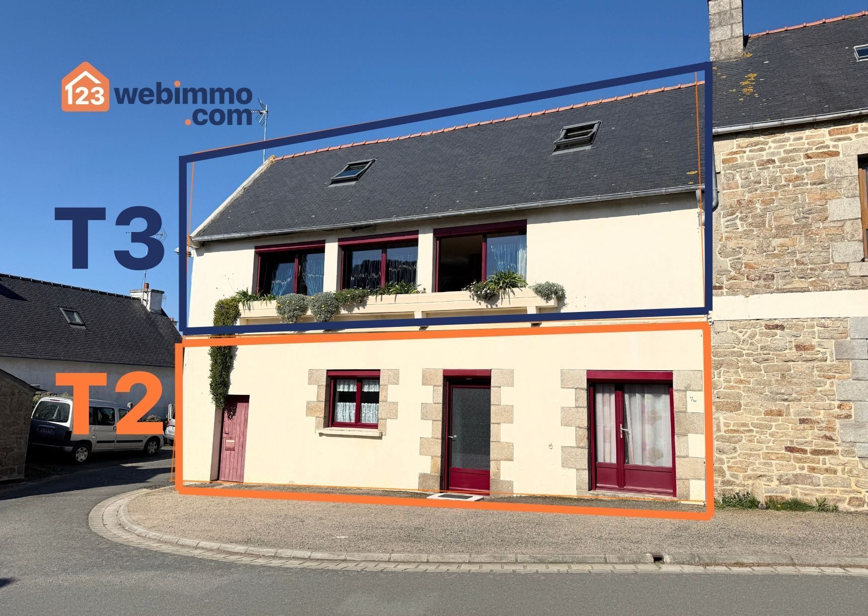 Au cœur de Locquémeau, à 400m des plages, maison de bourg renfermant un T2 en rez-de-chaussée et appartement de type T3 au 1er étage.
