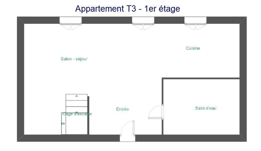 Valeur locative, le T3 peut-être loué 650€/mois et le T2 450€/mois.