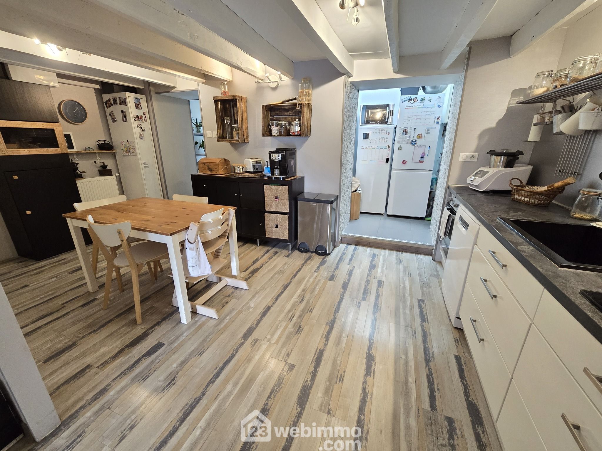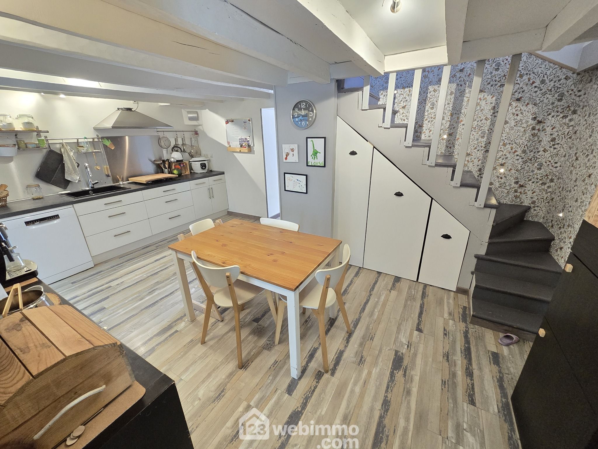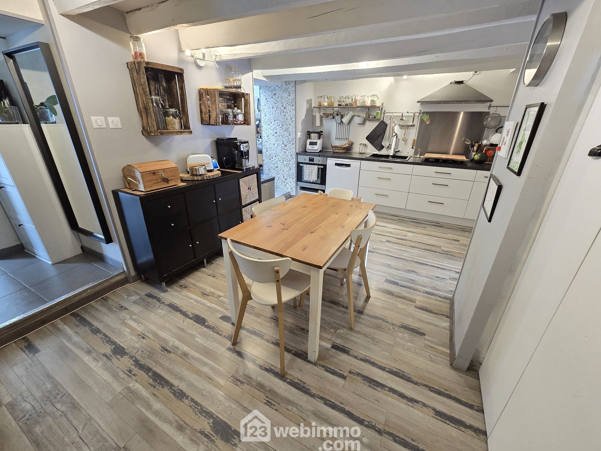 Au rez-de-chaussée, une belle pièce de vie avec pierres et poutres apparentes et cheminée, une cuisine fermée et fonctionnelle où l'on peut prendre ses repas en famille en toute convivialité. Et une salle de bain avec baignoire.