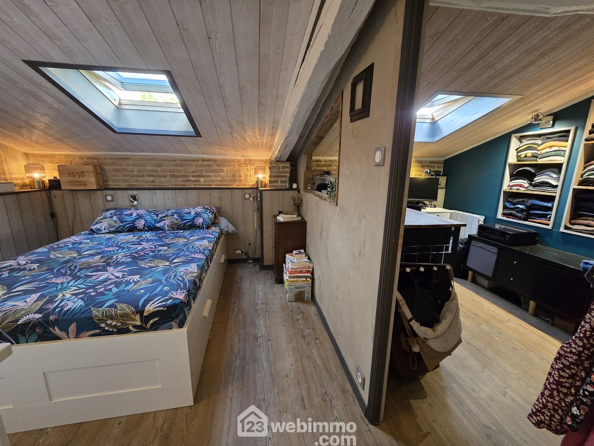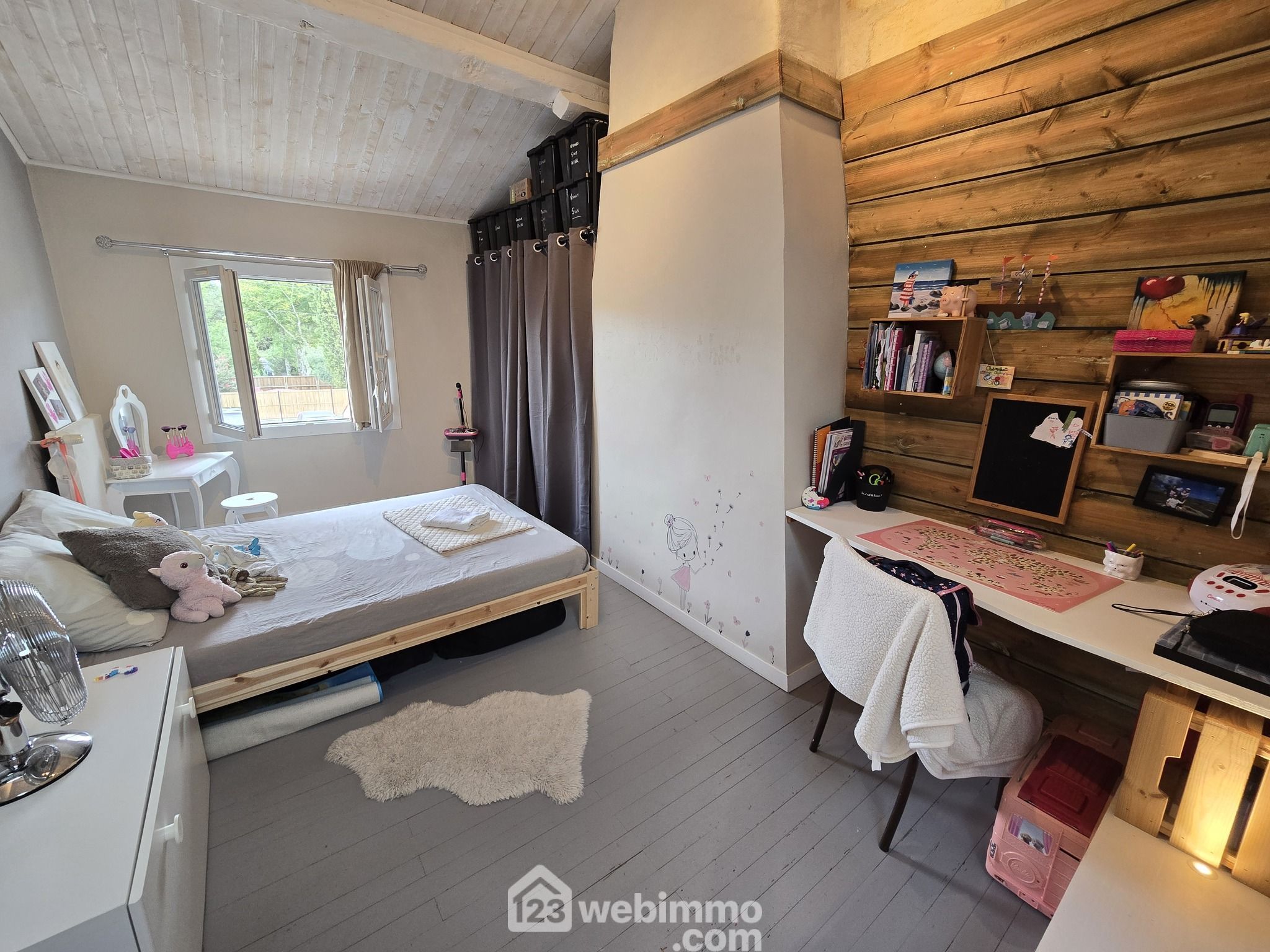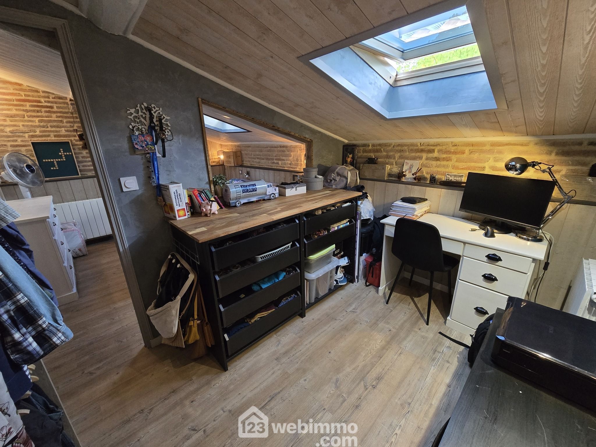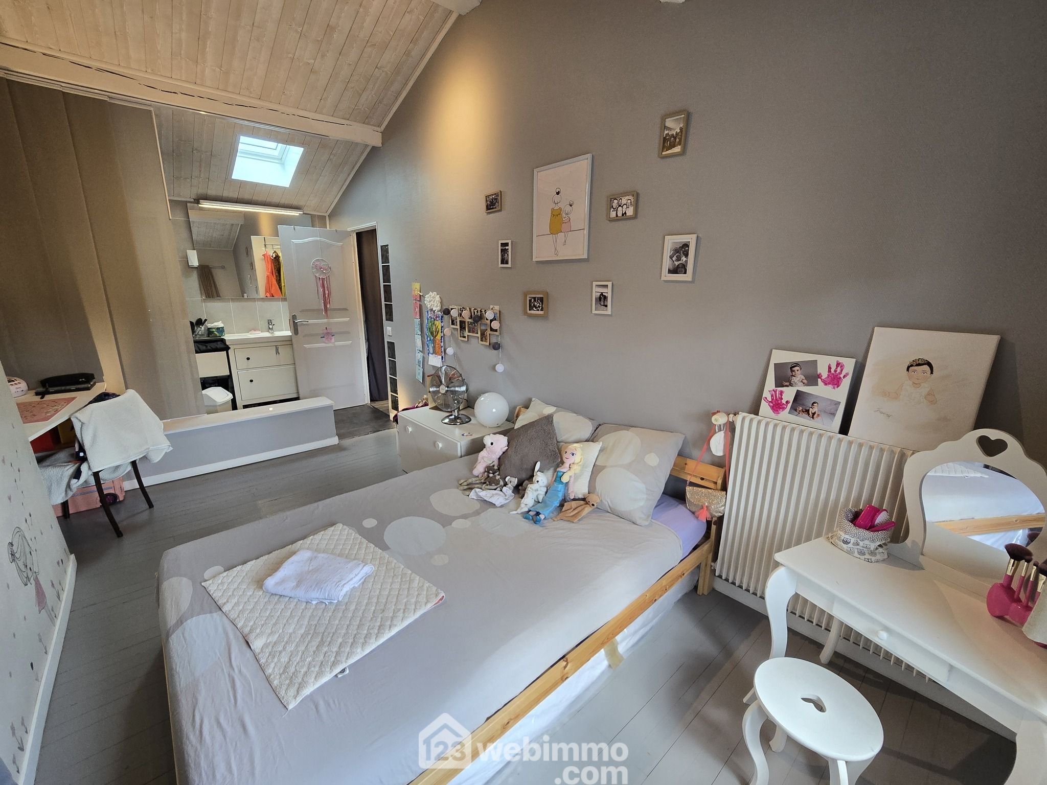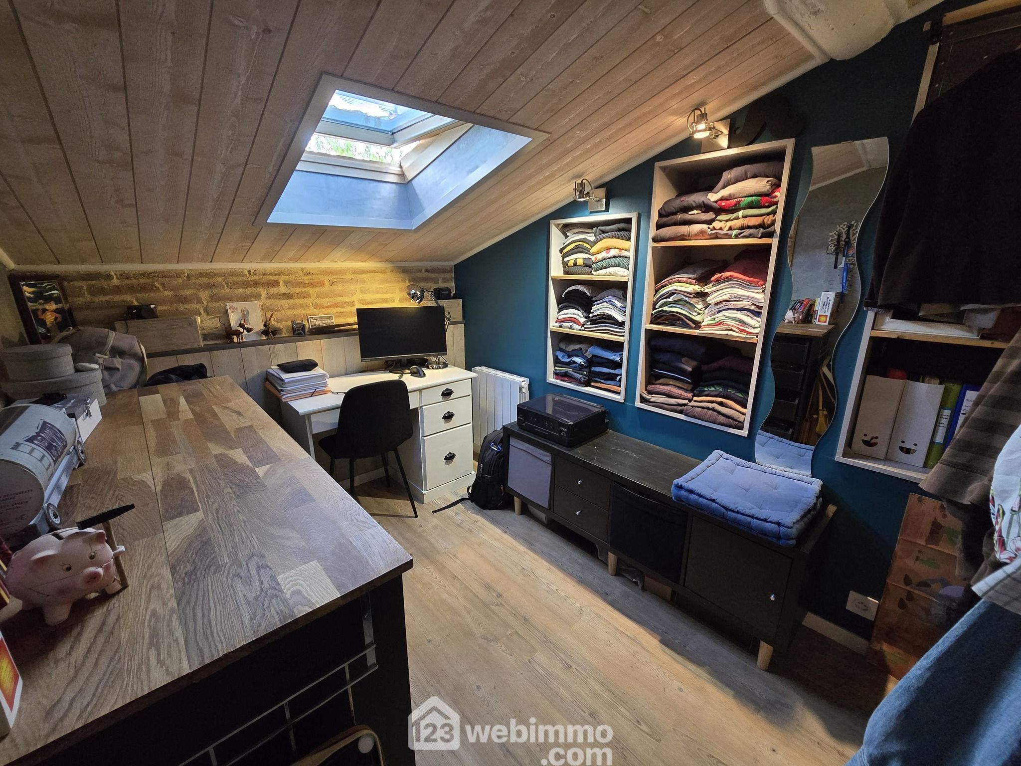 À l'étage : trois chambres au total dont une avec un bel espace dressing ou bureau de plus de 7 m² et une autre avec sa salle d'eau privative.